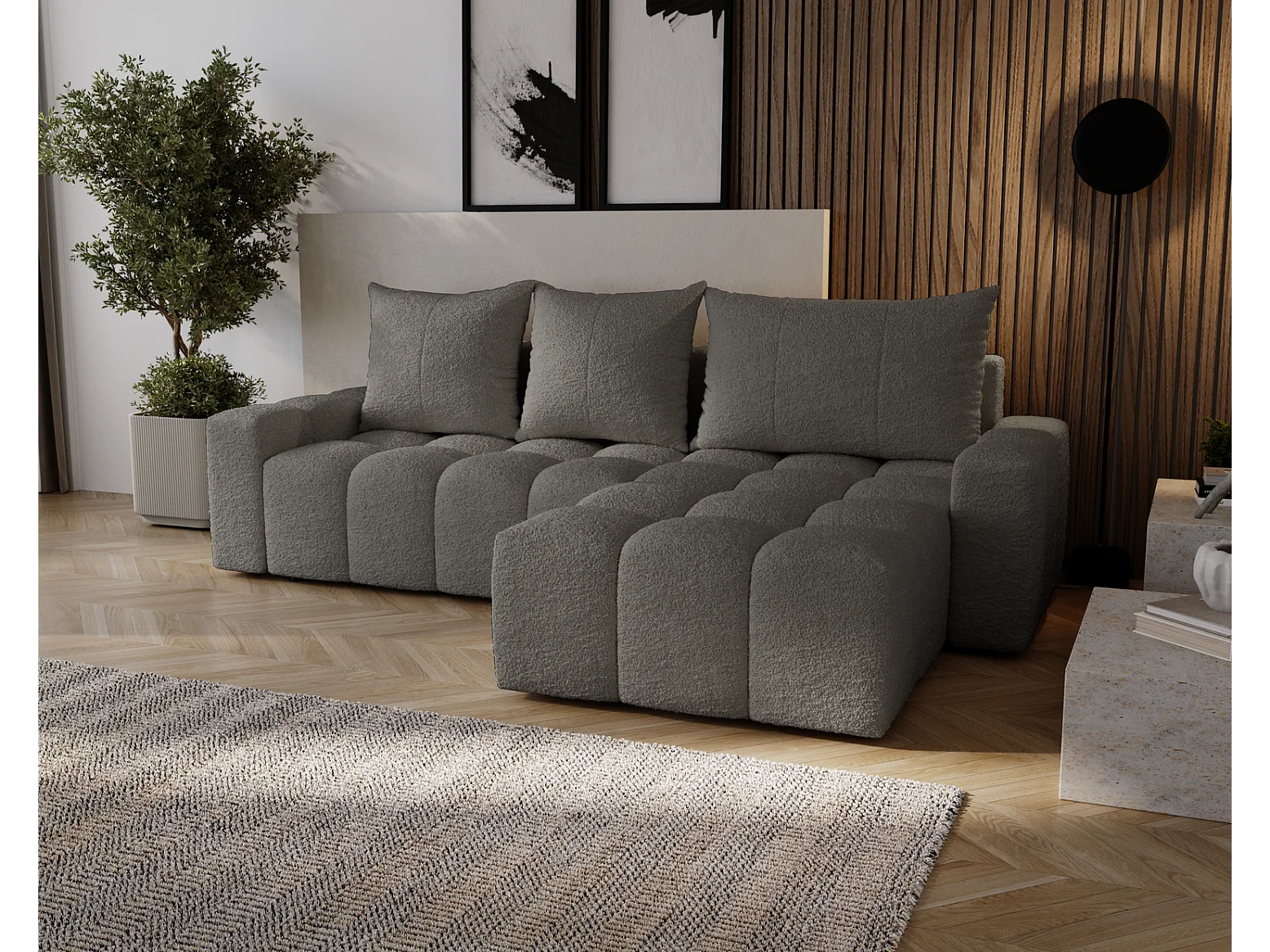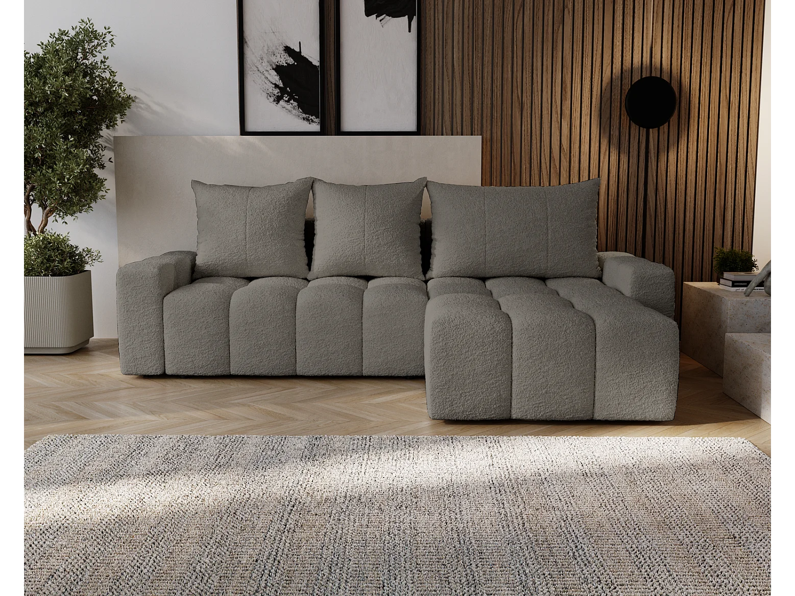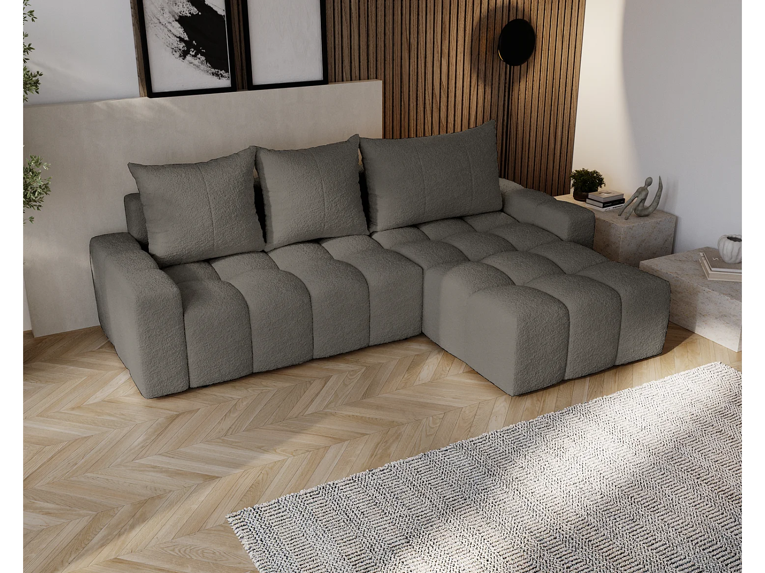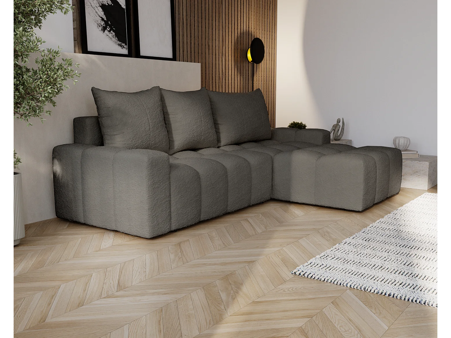 Emporius Wilson Hoekbank met slaapfunctie - slaapbank met bedlade, rechts, bouclé donkergrijs (Anthology 18)