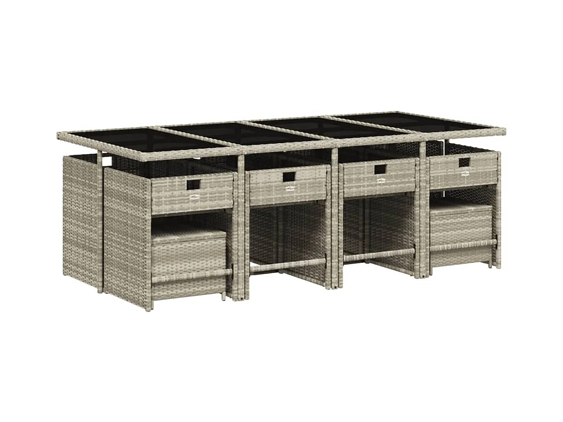 Sener 9-delige Tuinset met kussens poly rattan lichtgrijs