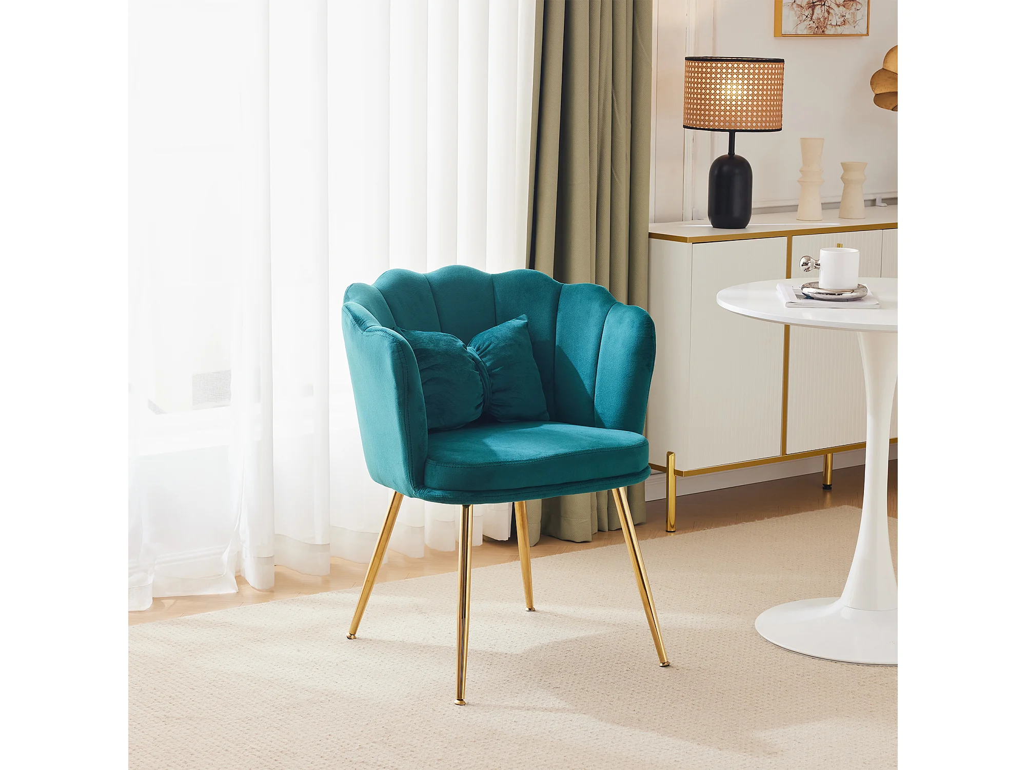 Enkele fluwelen stoel - 63 x 58 x 77 cm - Vergulde metalen poten en vlinderkussens - Groen