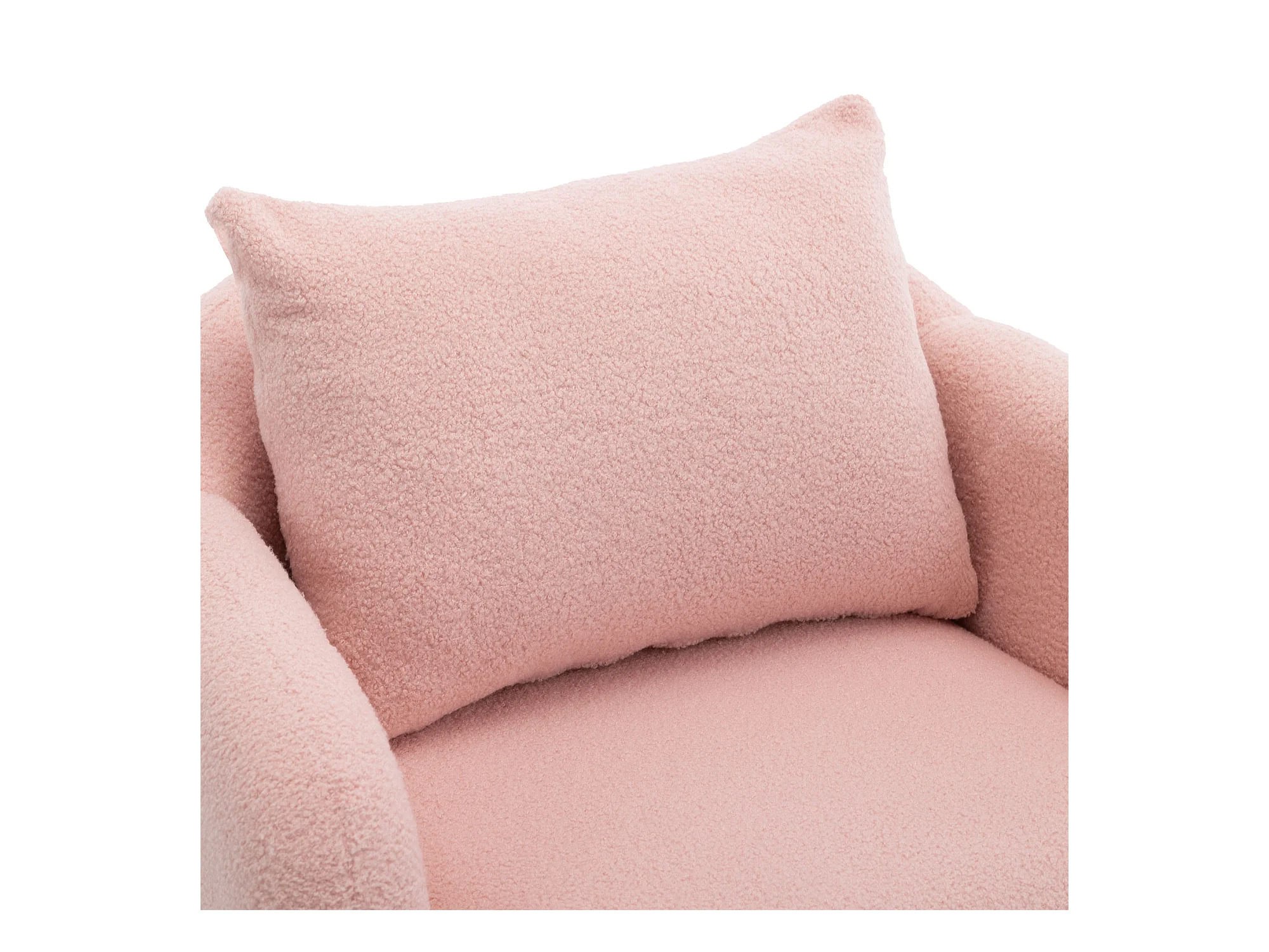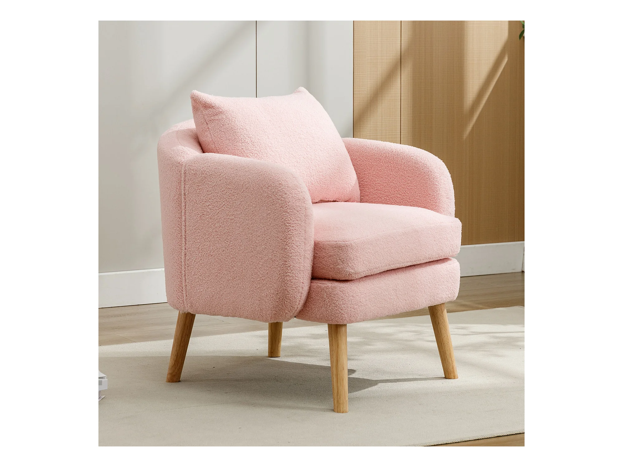Enkele roze fauteuil met kussens, teddy fluweel, houten poten 71x72x71cm