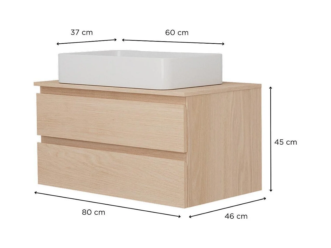 Kasjmier badkamerset 80 cm Kast met blad Wastafel Etna-kolom