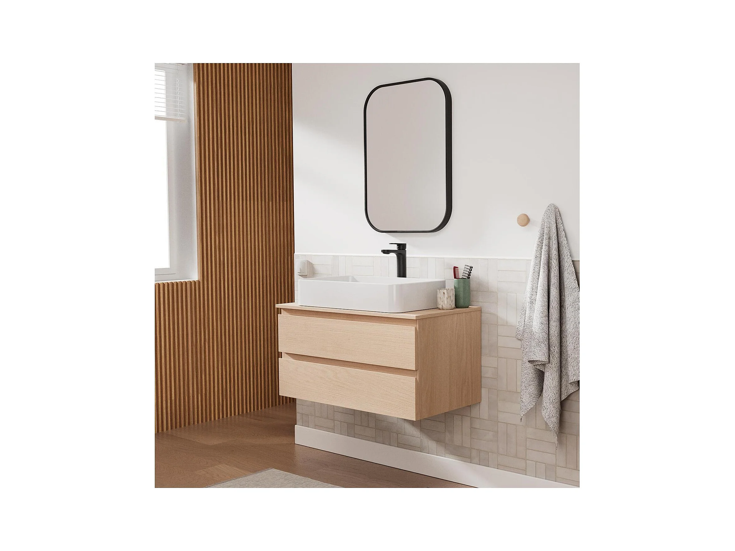 Enkele wastafelmeubelset 80 cm + wastafel + kraan + spiegel + SORRENTO kolom