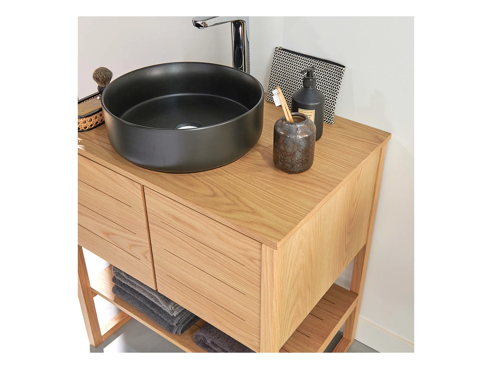 Dubbele wastafelmeubel + wastafel + spiegel + ATOLL-kolom