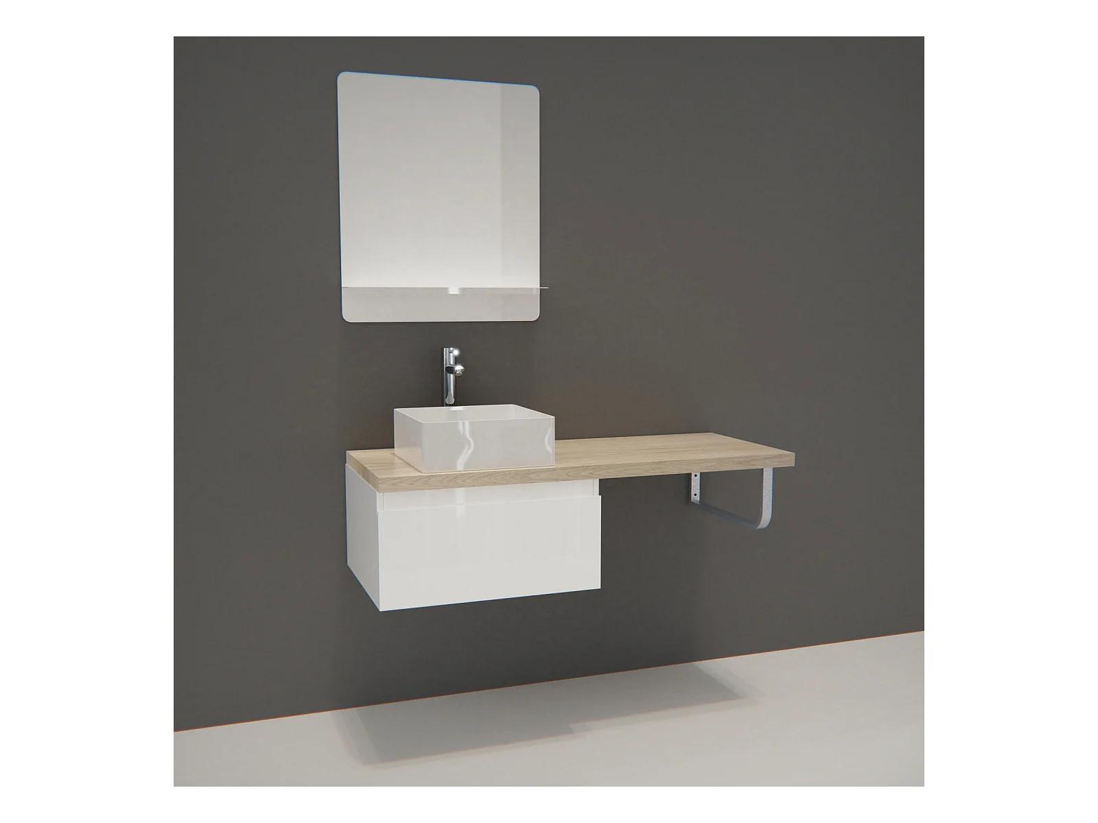 Livia wit en hout enkel wastafelmeubel 60cm 1 lade en sokkel