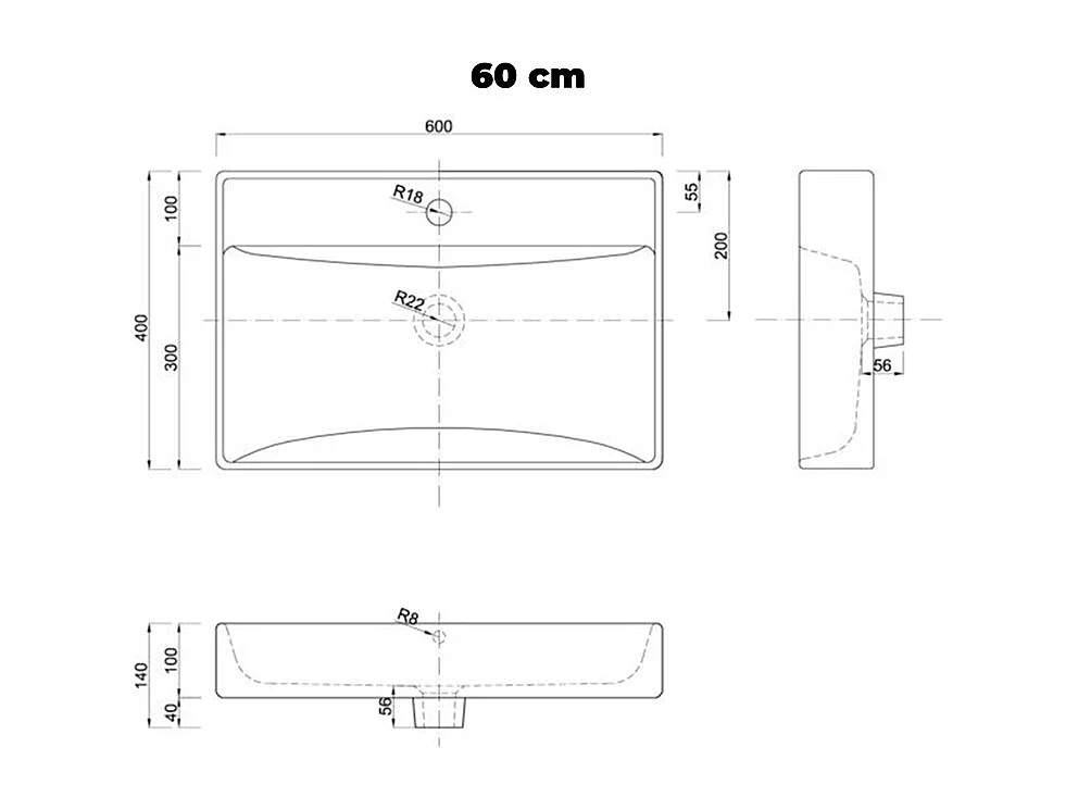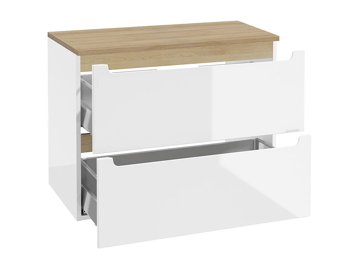 Enkele wastafel 80cm 2 laden Livia Wit en Hout