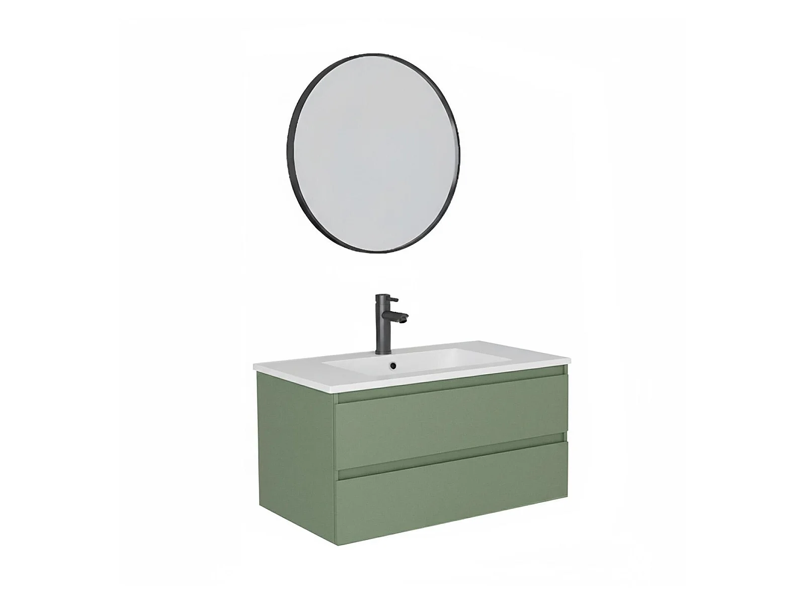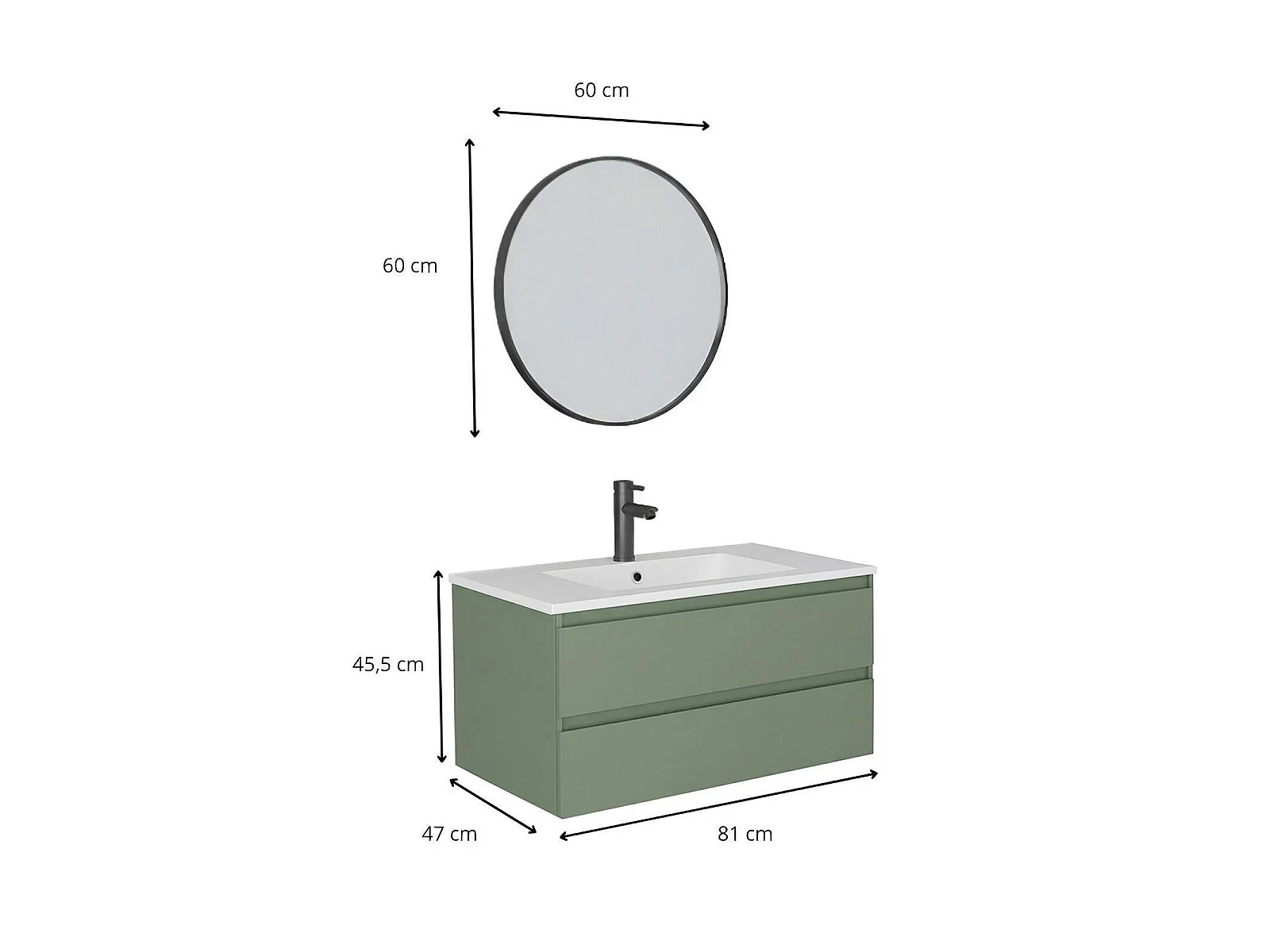 Enkele wastafelmeubel van 80 cm, eikenhouten afwerking, met kraan en spiegel SORRENTO