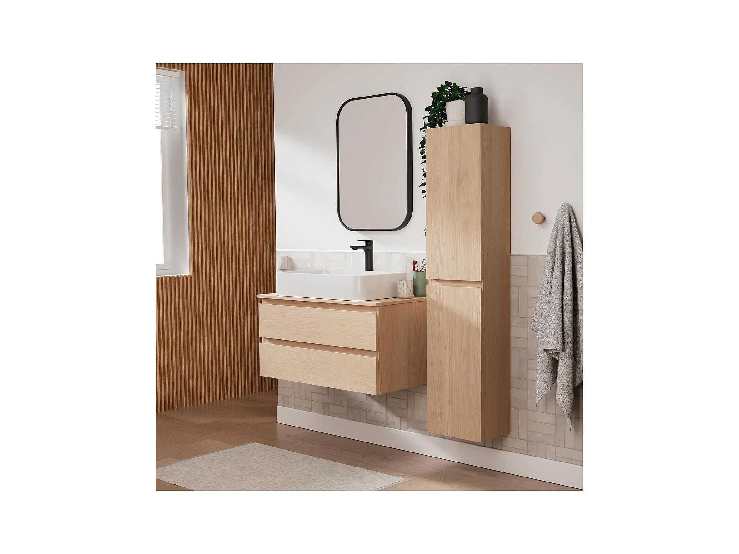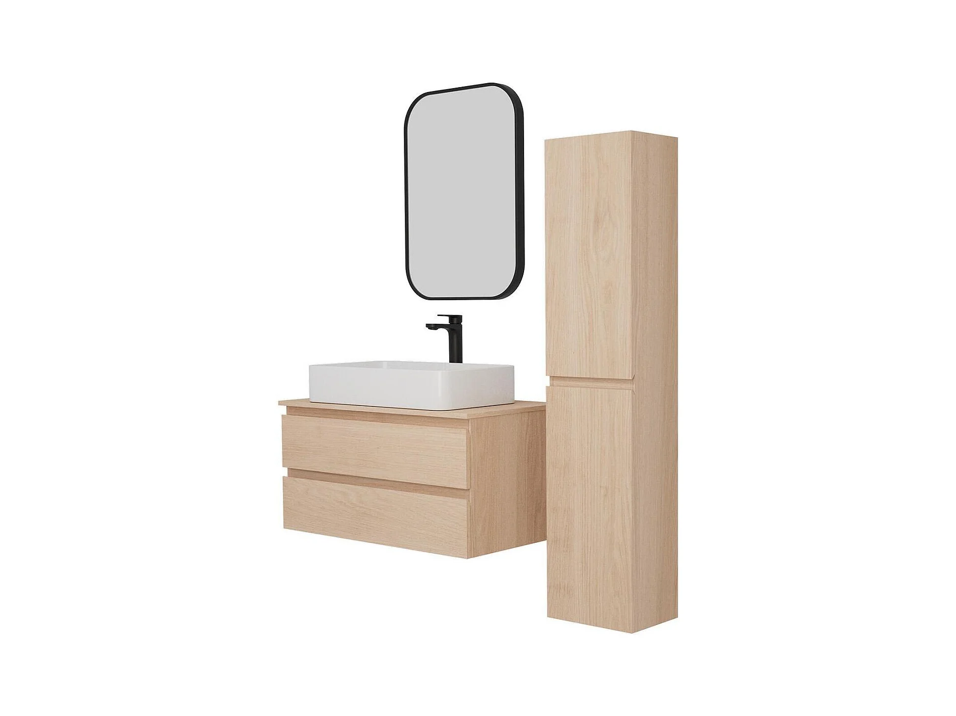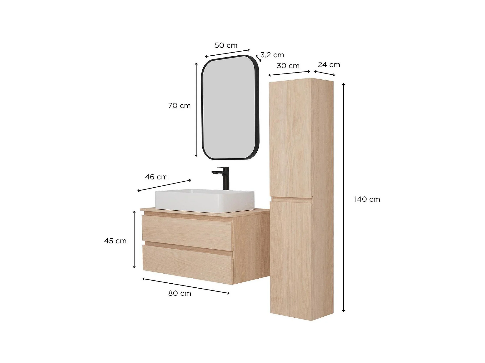 Enkele wastafelmeubelset 80 cm + wastafel + kraan + spiegel + SORRENTO kolom