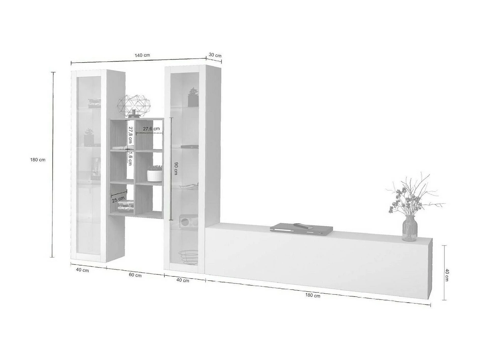 Dmora Wandmeubel Eros 30x320x180h cm Wit Glans 15 Planken Deur- en Klepopeningen, 3 Deuren Made in Italy