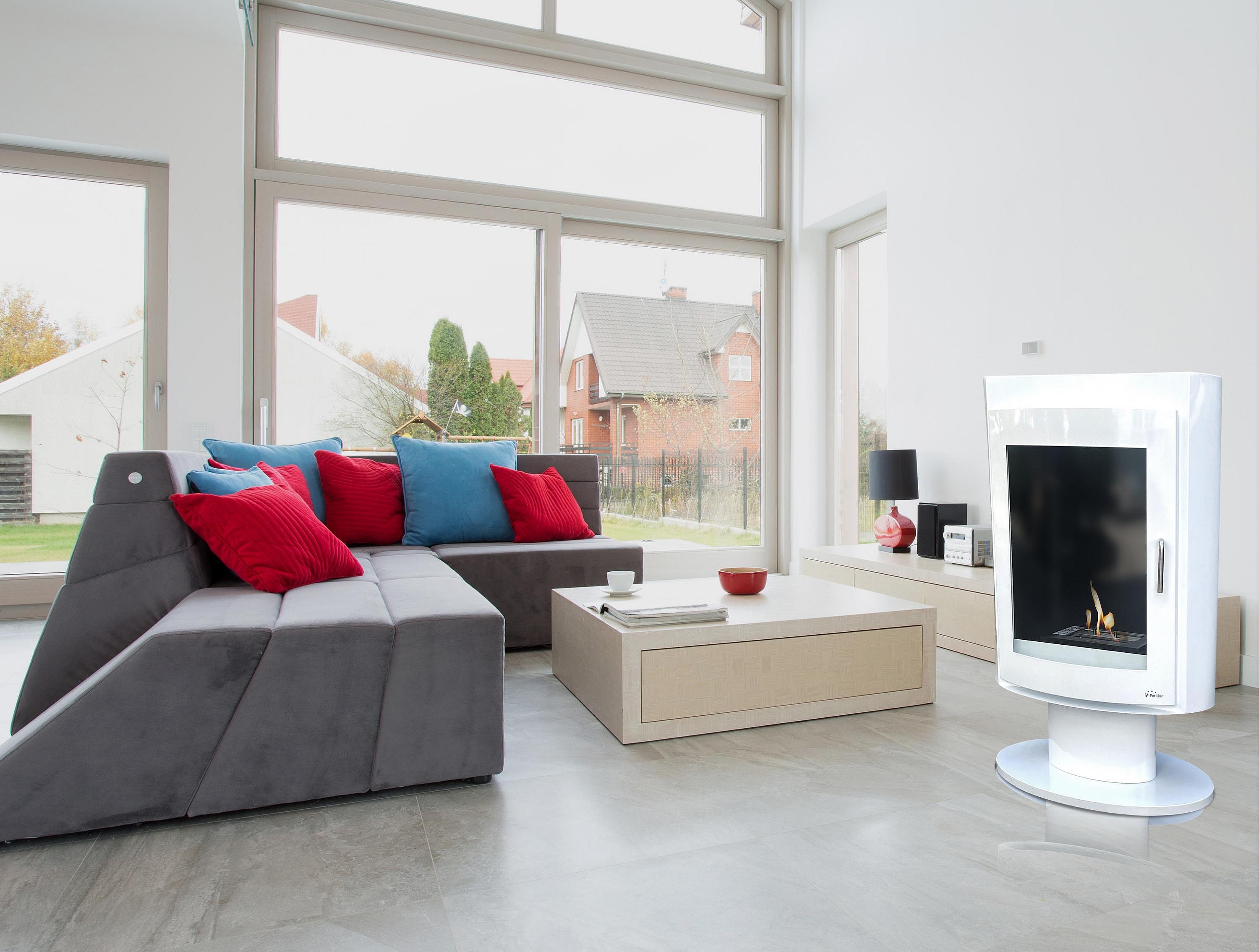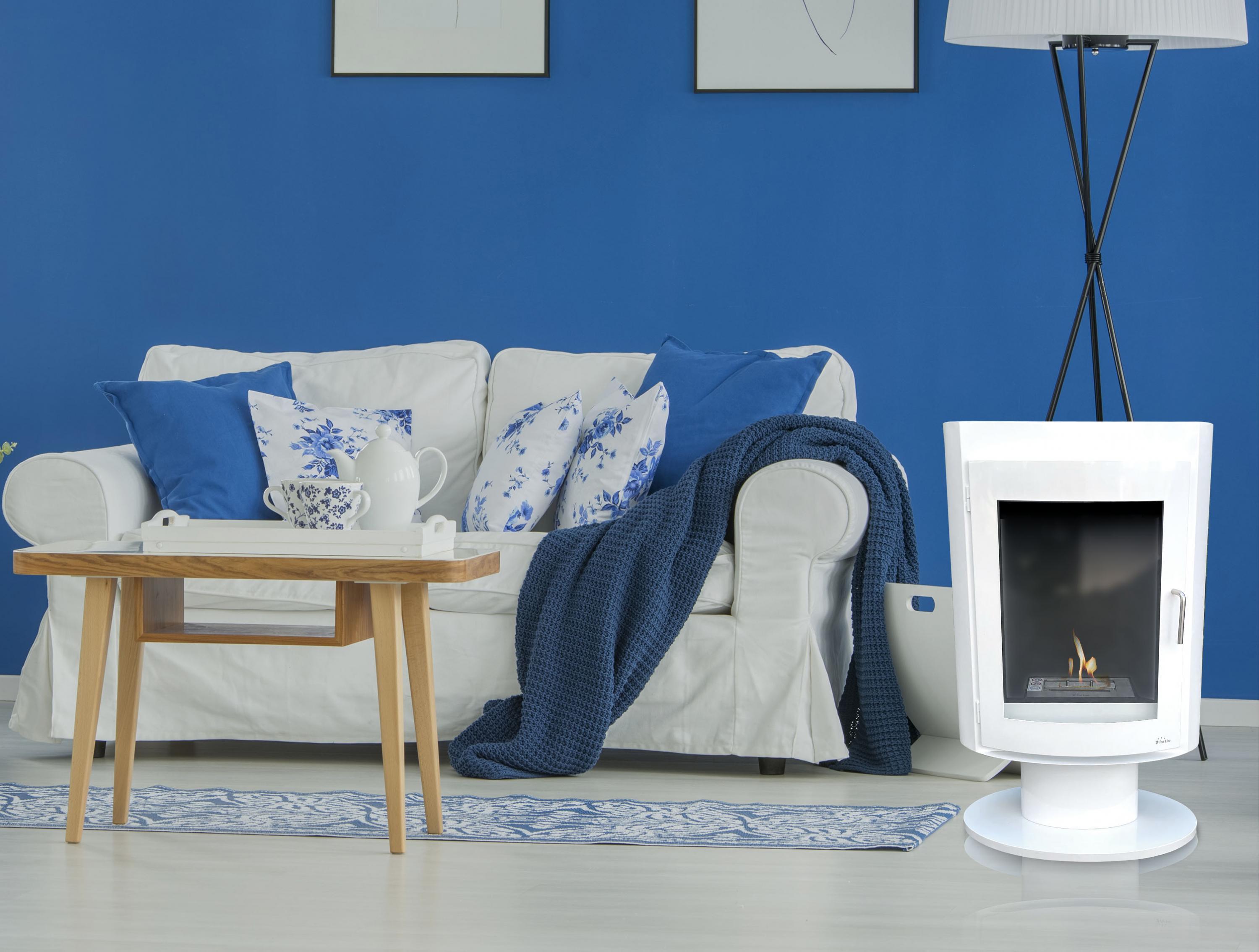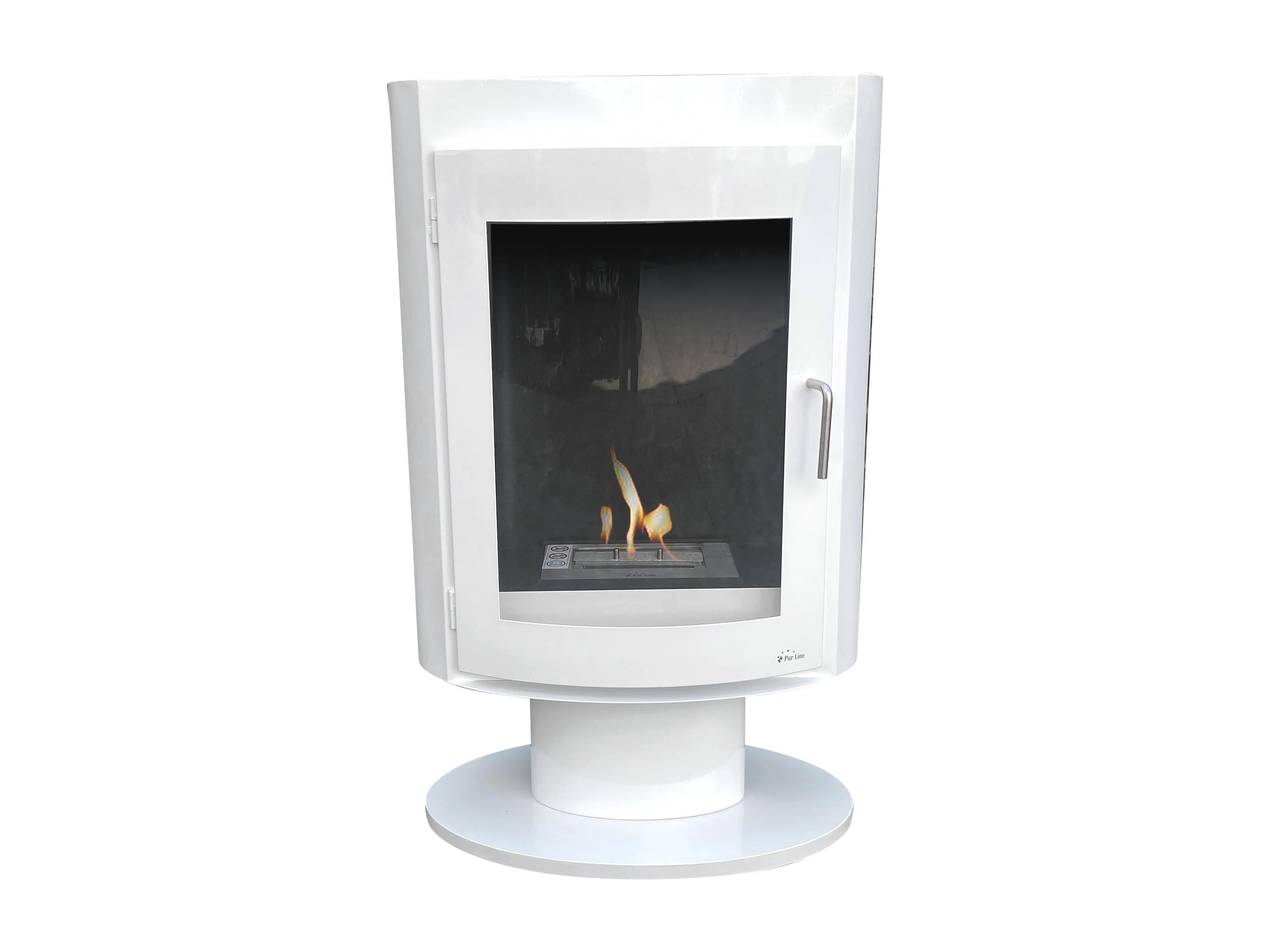 Staande ethanolhaard, langwerpig ontwerp in wit gelakt staal