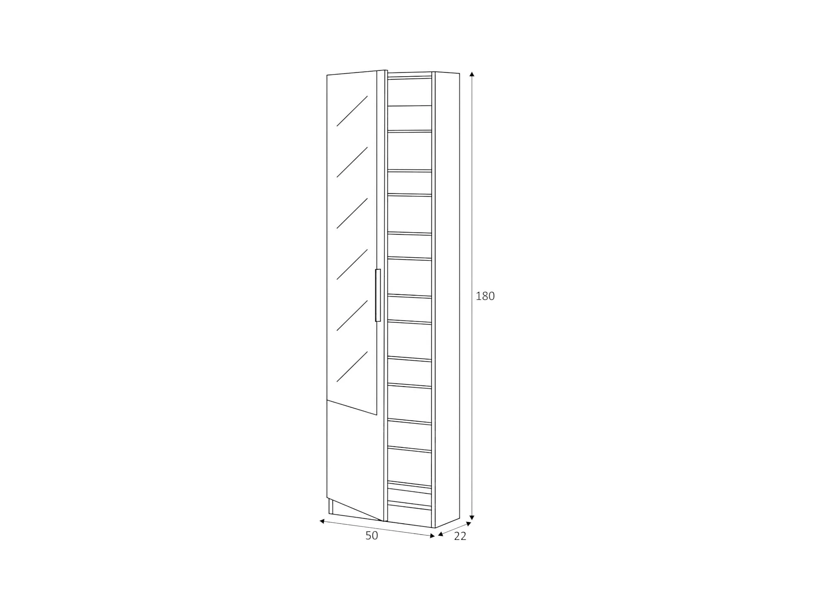 Eugene schoenenrek, Hoge schoenenkast met 1 deur, Moderne schoenenkast, Entreekast met spiegel, 50x22h180 cm, Eiken