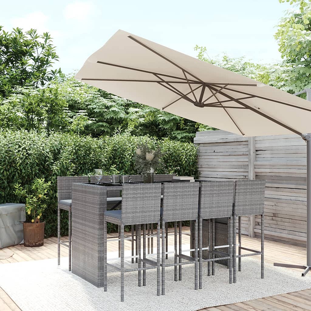 Grylin 9-delige Tuinbarset met kussens poly rattan grijs