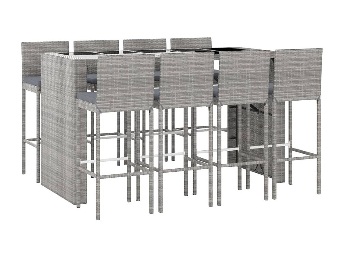 Danick 11-delige Tuinbarset met kussens poly rattan grijs