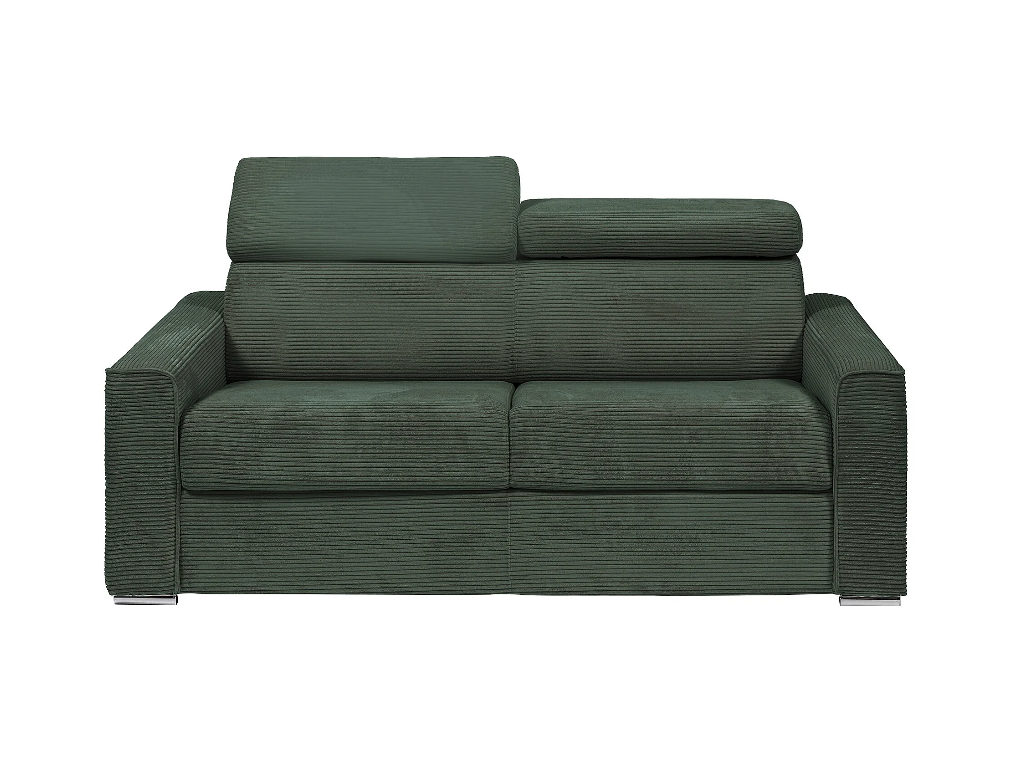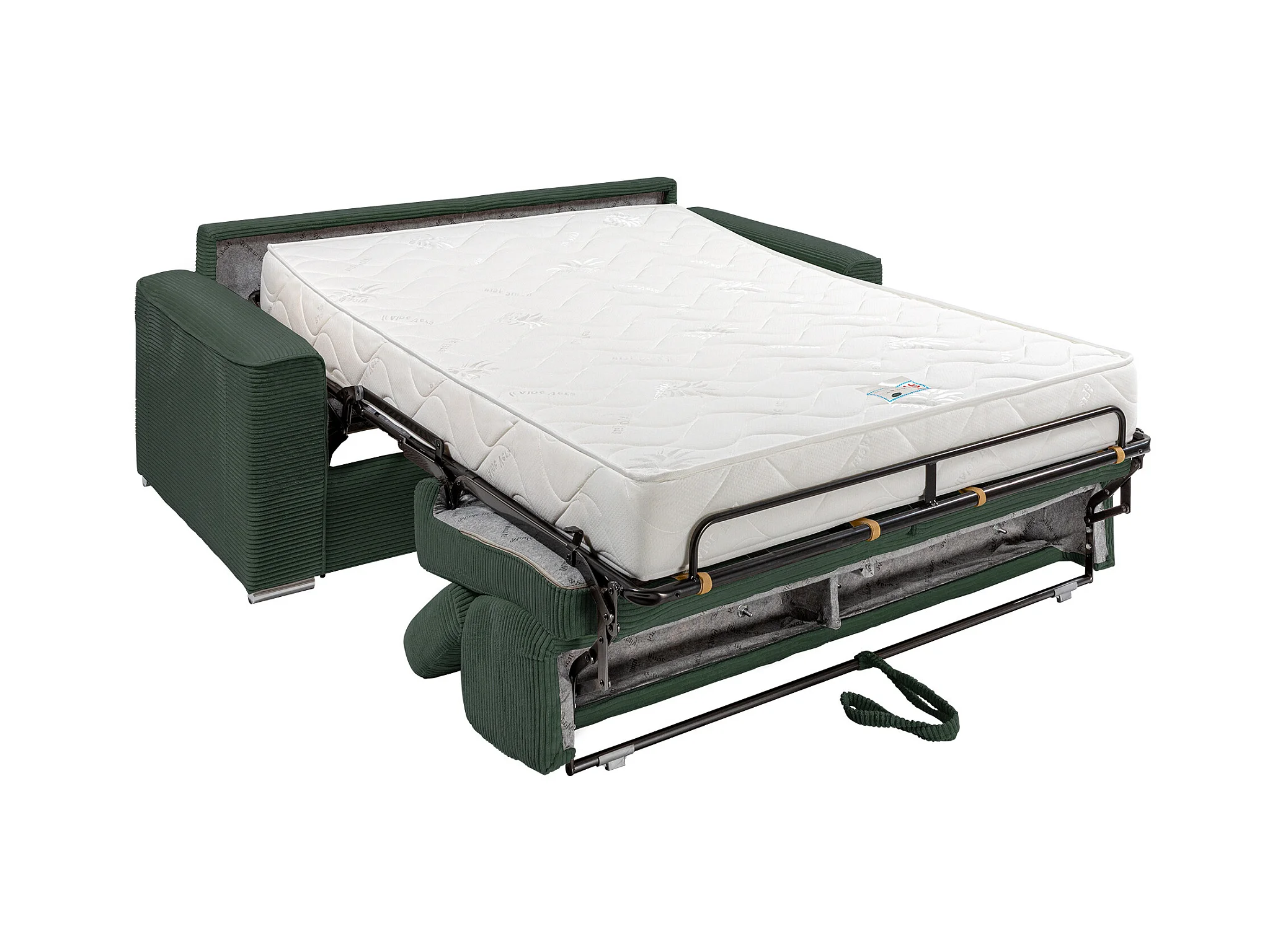 Express-driezitsslaapbank van groen ribfluweel - Bed met brede latten 140 cm - Matras 22 cm - VIZIR