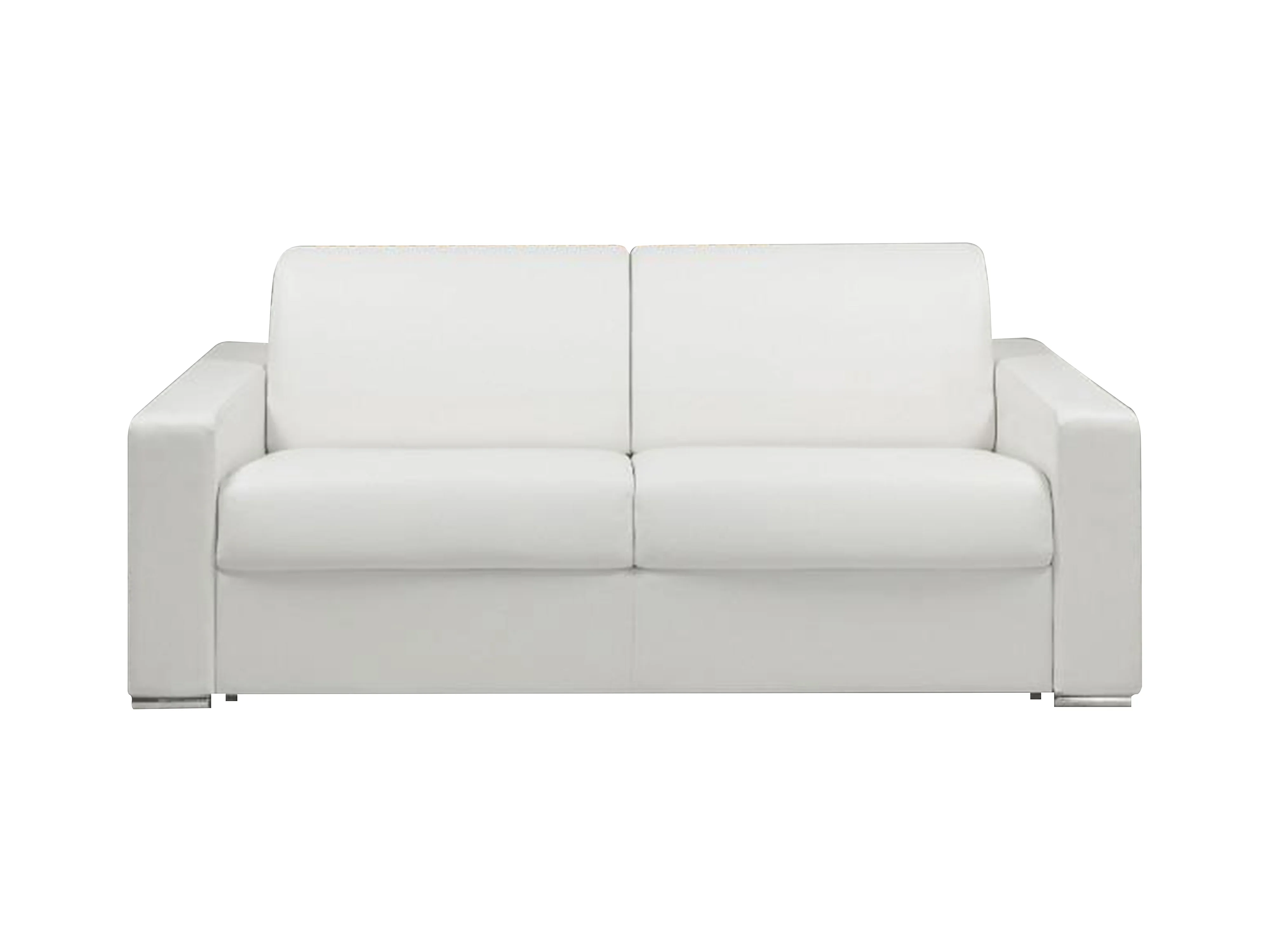 Snel omgebouwde slaapbank met 3 plaatsen in wit kunstleer - Bed van 140 cm met brede latten - Matras 14 cm met geheugenschuim CALITO