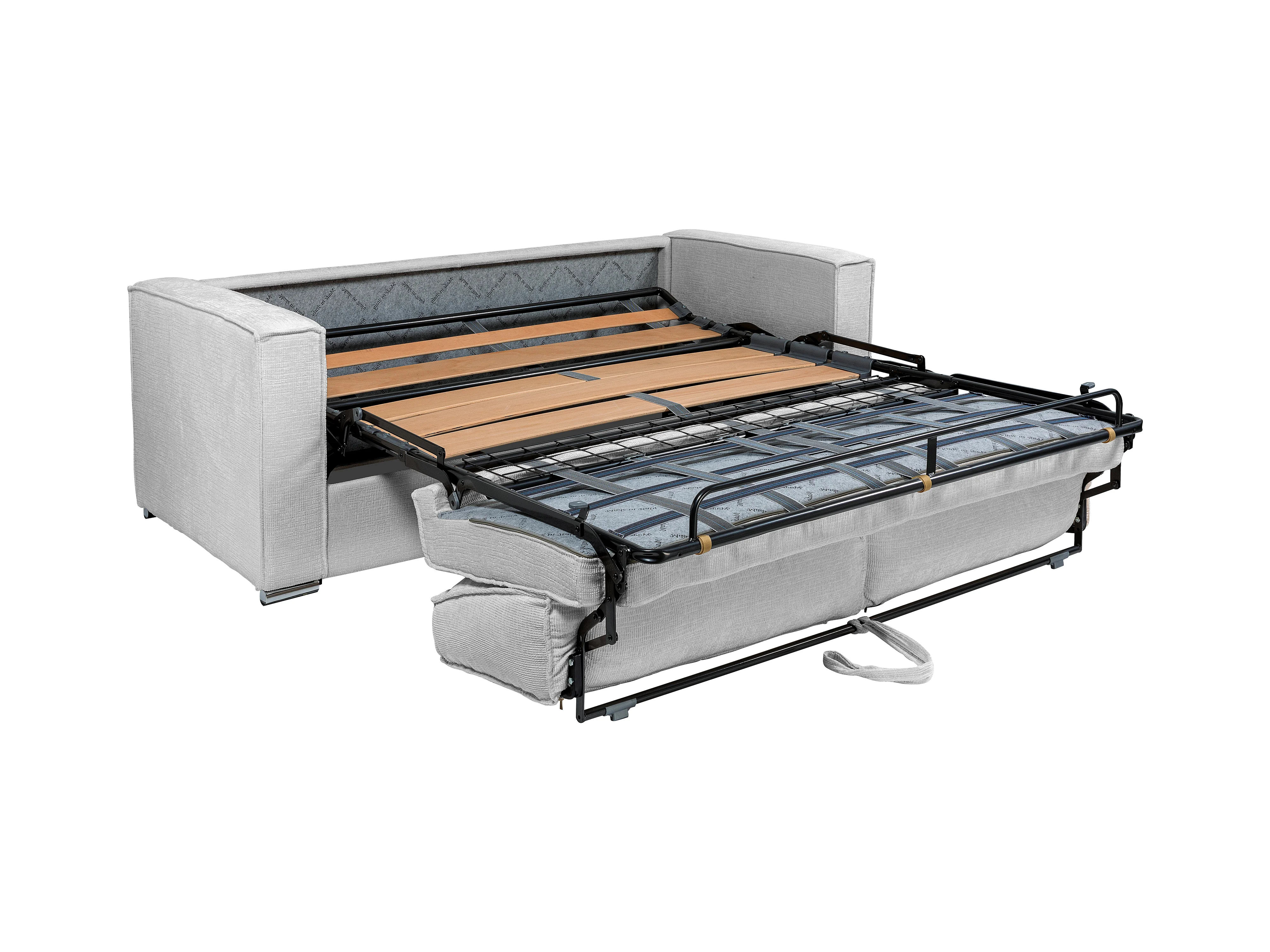 Express-driezitsslaapbank van mosterdgele chenille stof - Bed met brede latten 140 cm - Matras 18 cm LORETO