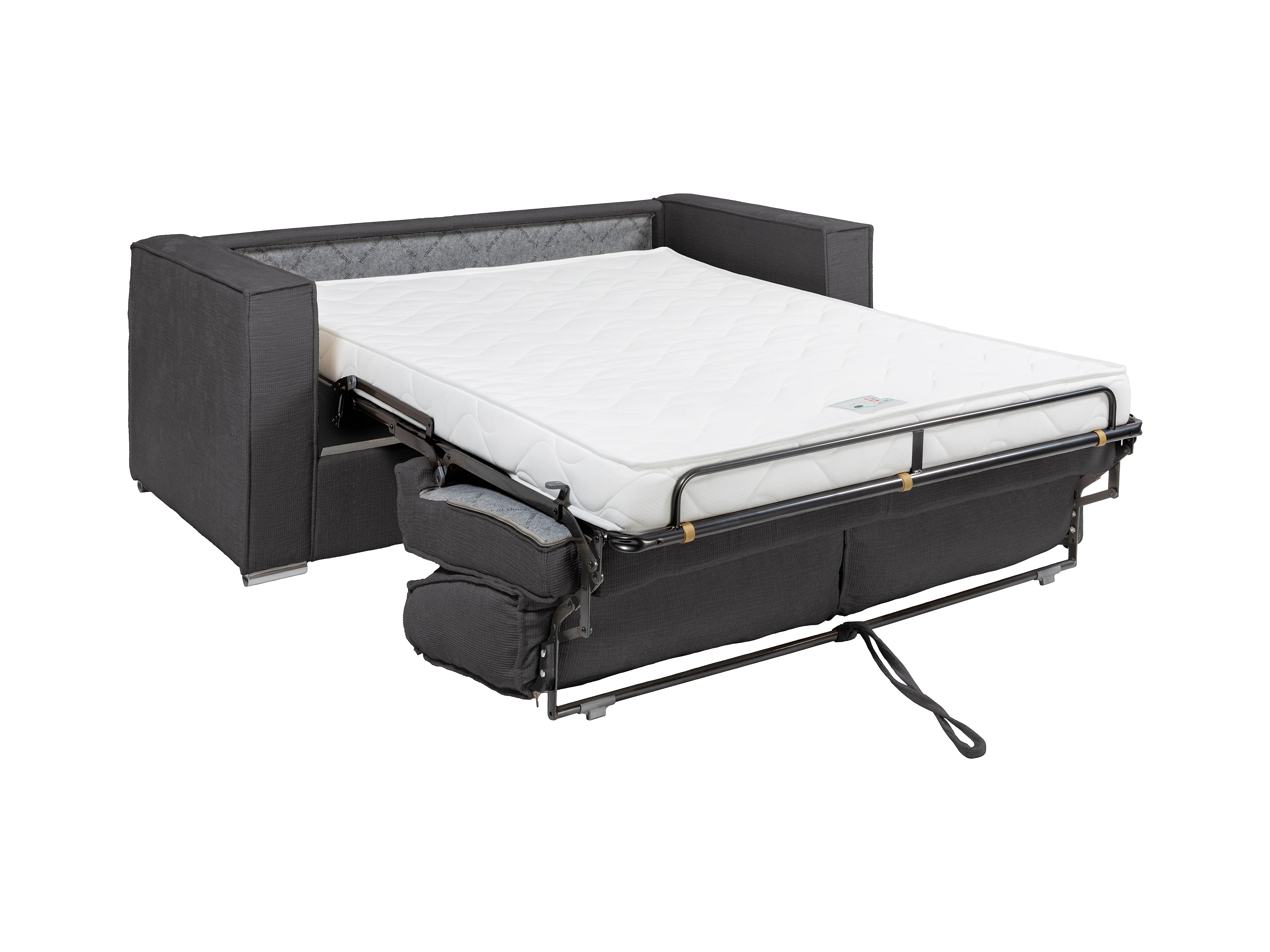 Express-driezitsslaapbank van antracietgrijze chenille stof - Bed met brede latten 140 cm - Matras 14 cm LORETO