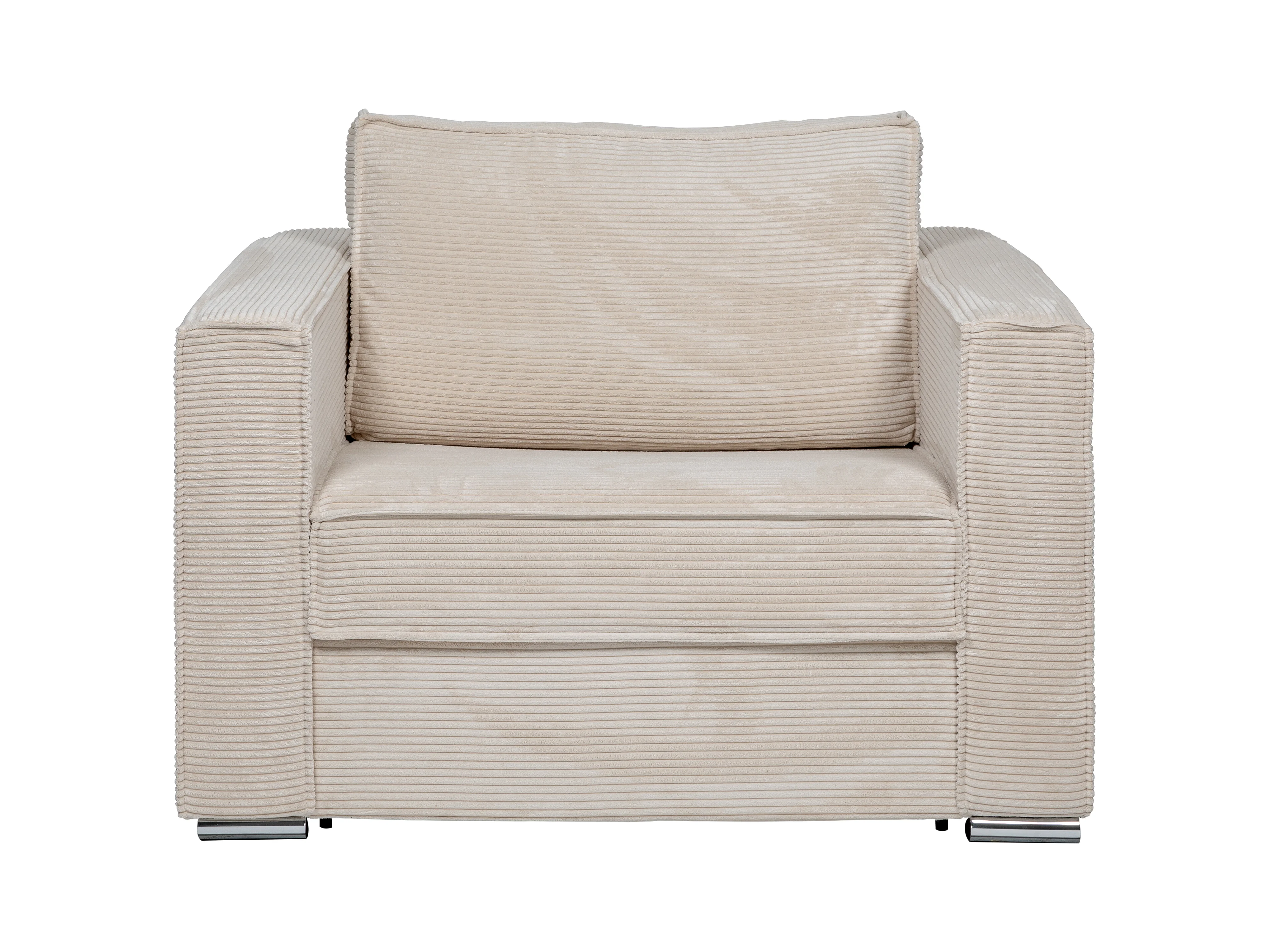 Slaapfauteuil van beige ribfluweel - Bed 70 cm - Matras 14 cm - LORETO