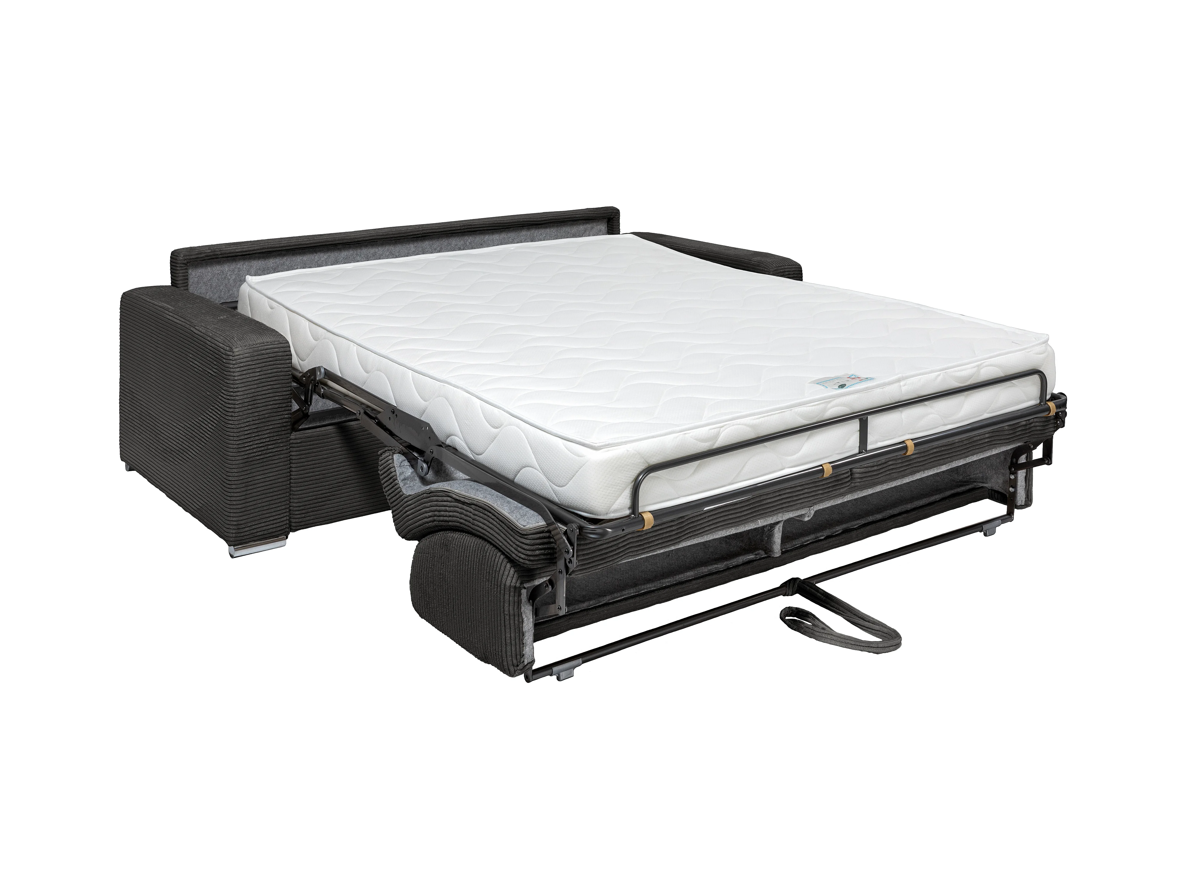 Express-vierzitsslaapbank van antracietgrijs ribfluweel - Bed met brede latten 160 cm - Matras 18 cm CALITO