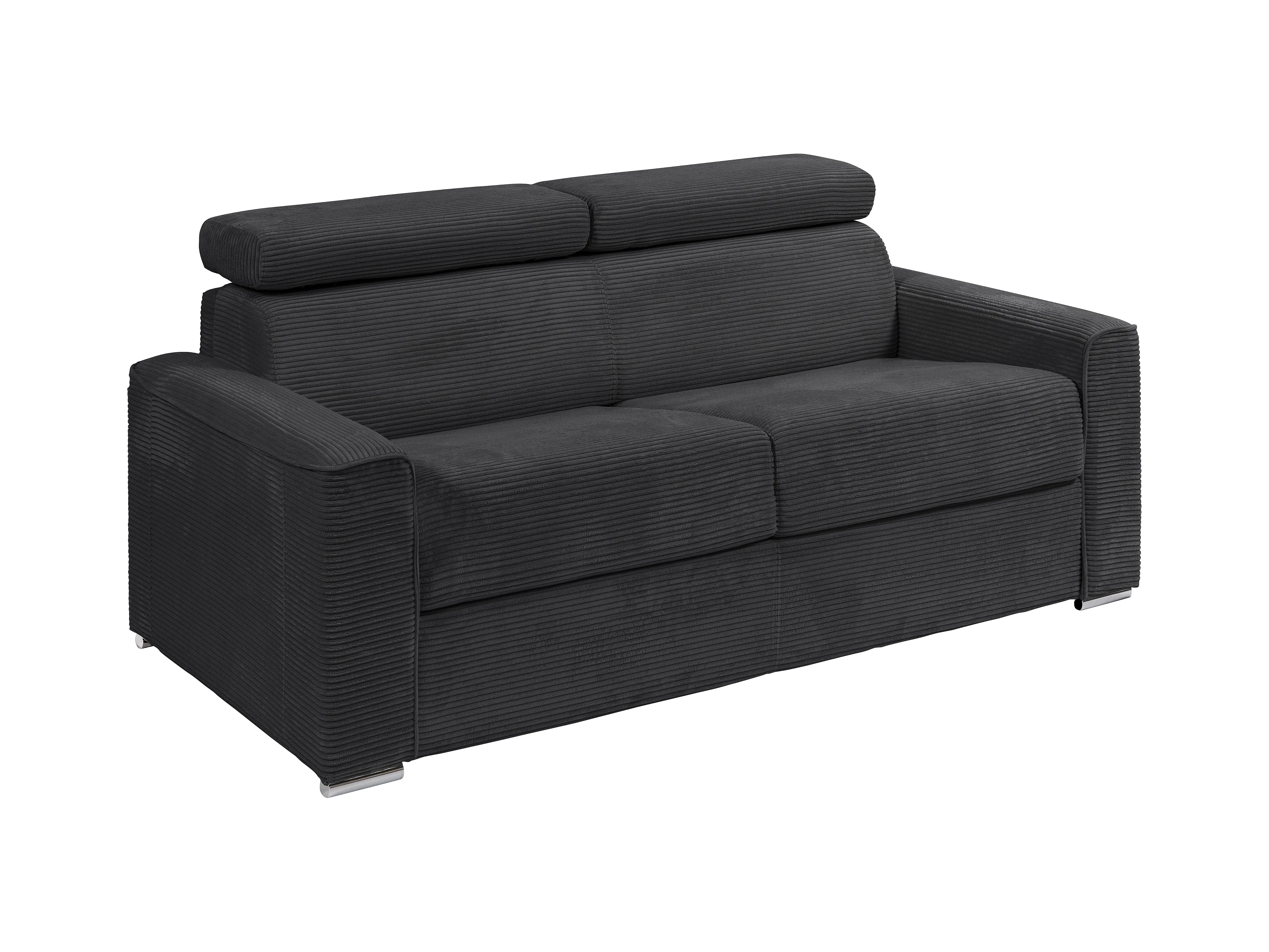 Express-vierzitsslaapbank van grijs ribfluweel - Bed 160 cm - Matras 22 cm - VIZIR