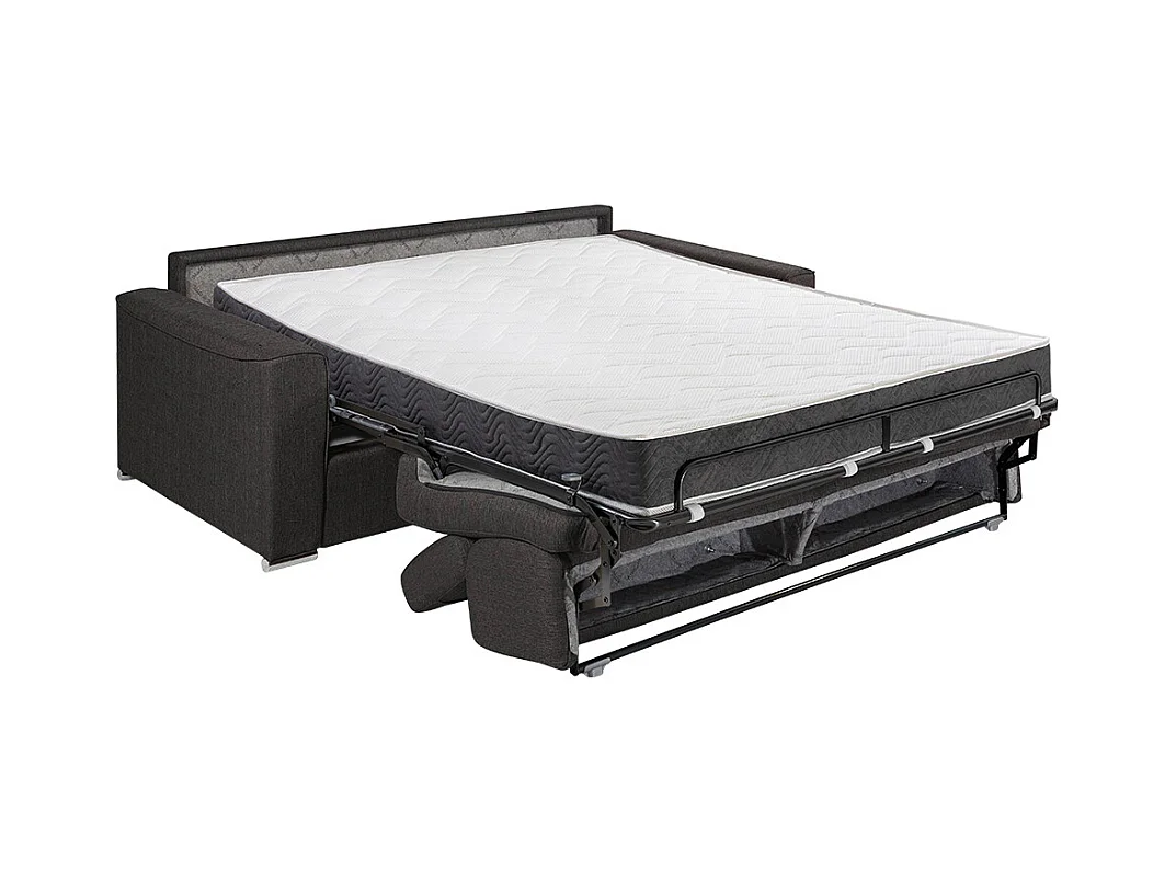 Vierzits-express-slaapbank van paarse stof - Bed van 160 cm - Matras 18 cm met schuim met vormgeheugen VIZIR