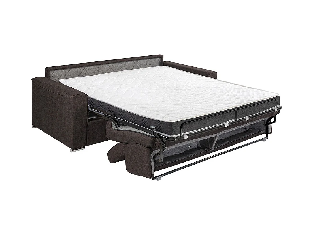 Vierzits-express-slaapbank van paarse stof - Bed van 160 cm met brede latten - Matras 14 cm met schuim met vormgeheugen VIZIR