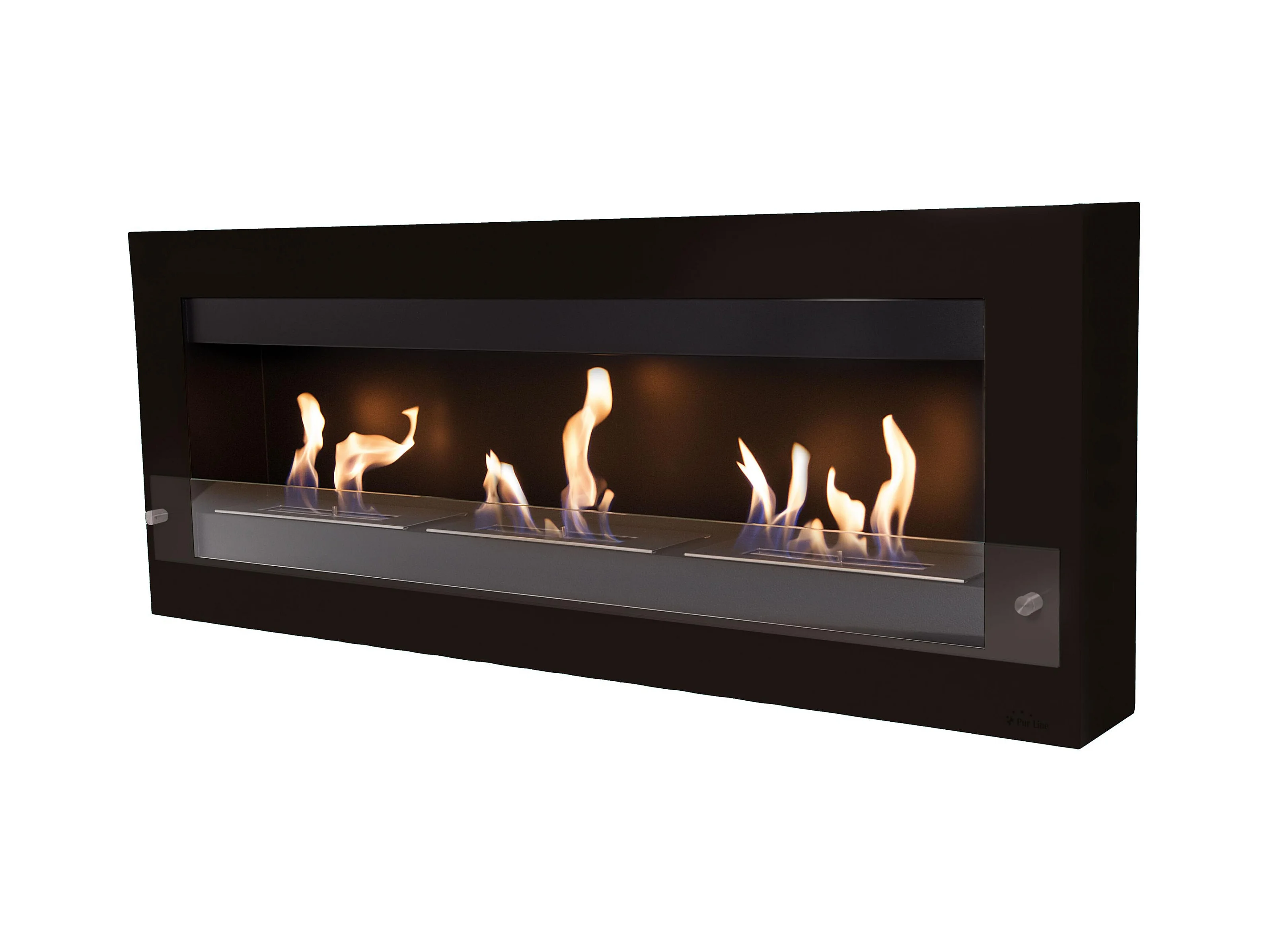 Ethanol haard met panoramische wandmontage in roestvrij staal met 3 branders
