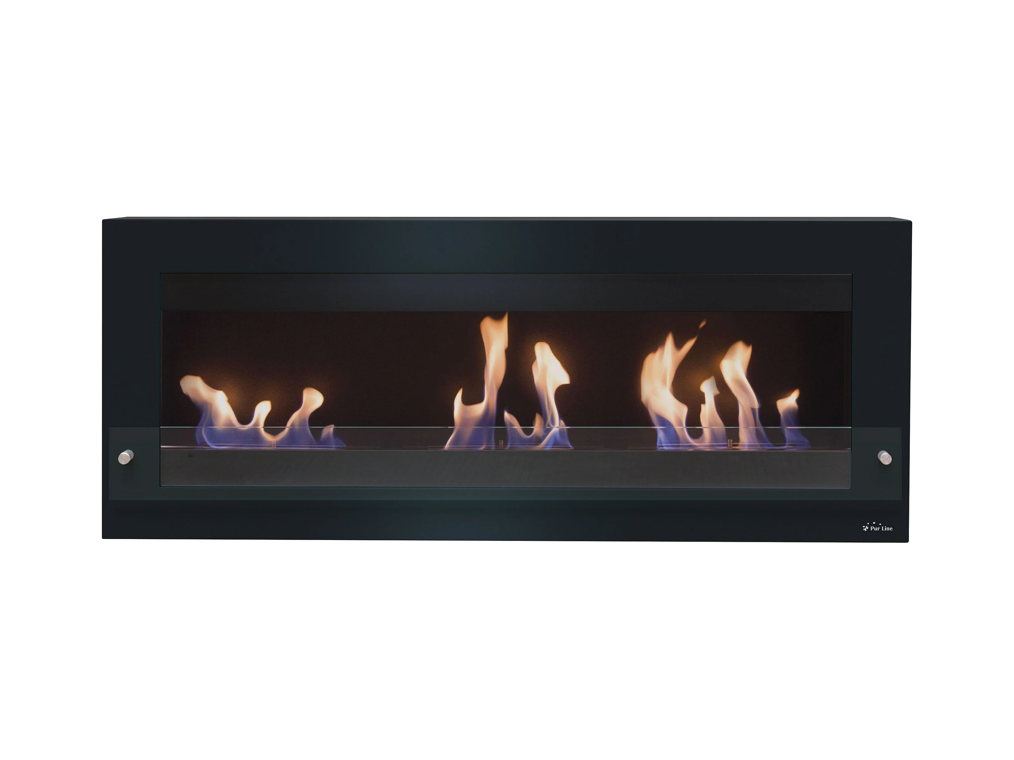 Rechthoekige design wandhaard op ethanol in zwart staal en gehard glas