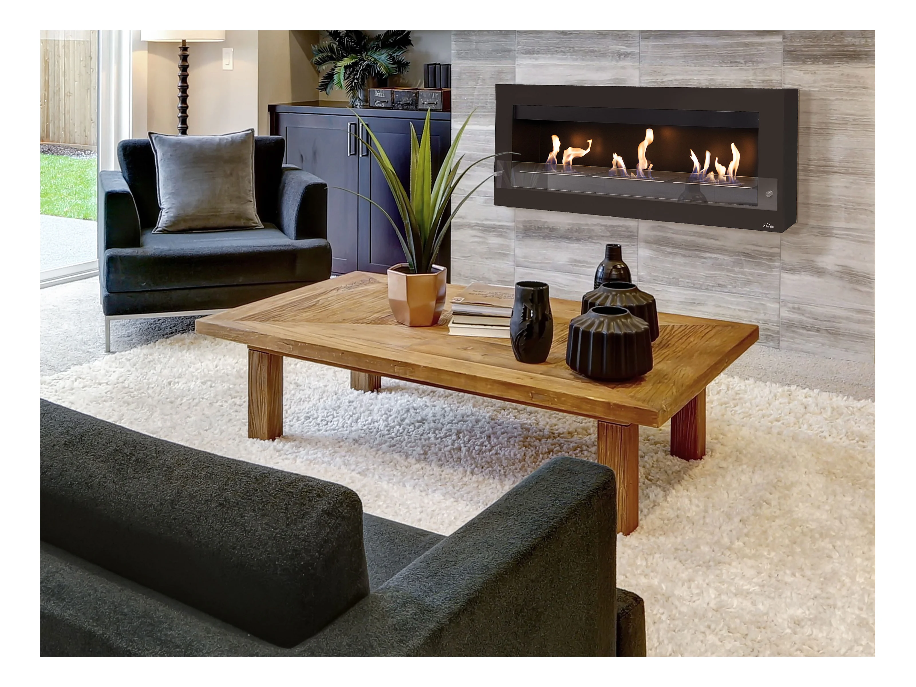 Wandgemonteerde ethanolhaard in zwart roestvrij staal design