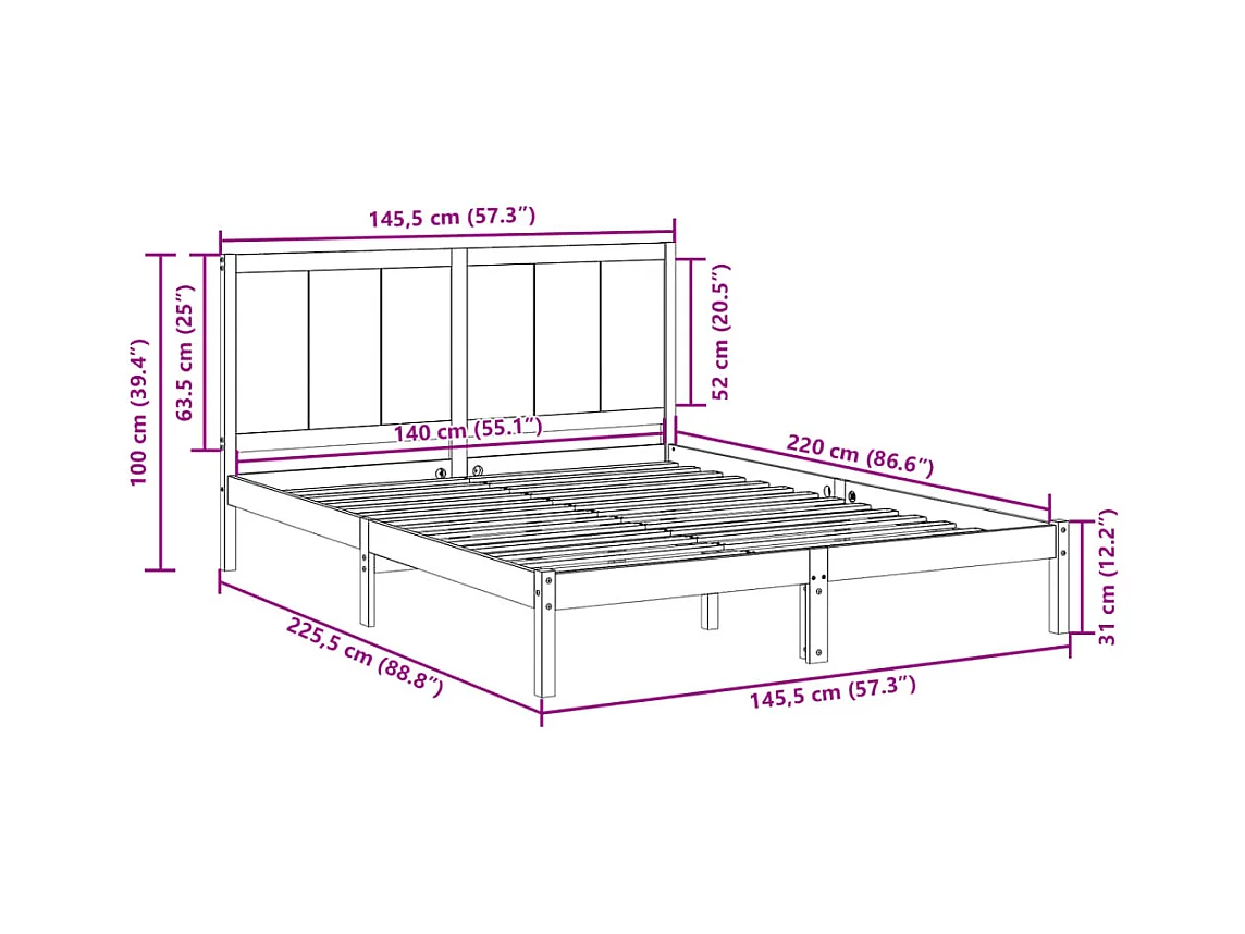 Extra lang bedframe zonder matras 140x220 cm massief hout