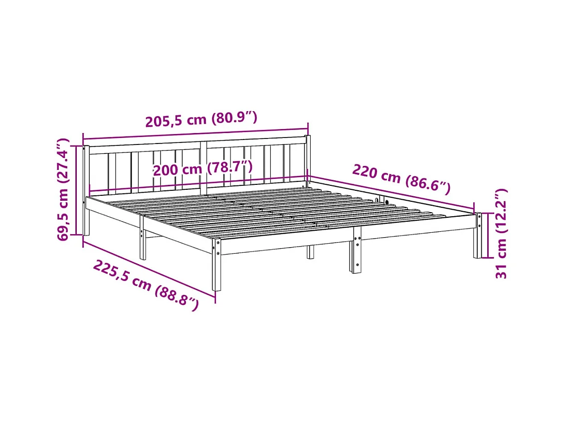Extra lang bedframe zonder matras 200x220 cm massief grenenhout