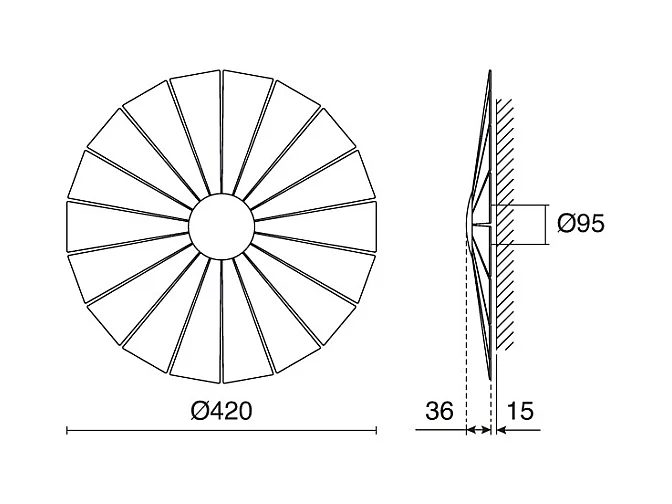 EYE wandlamp moderne stijl - D. ø82 cm- interieur- LED SMD- 14W- klein- 3000K- zwart en natuurlijk hout