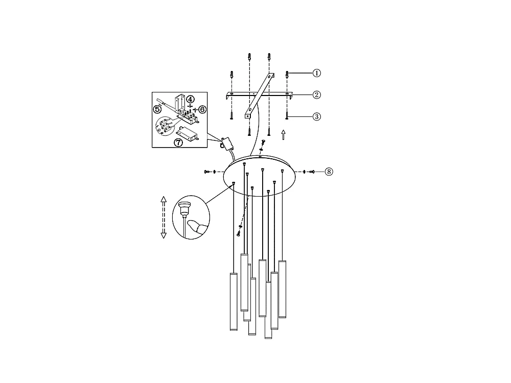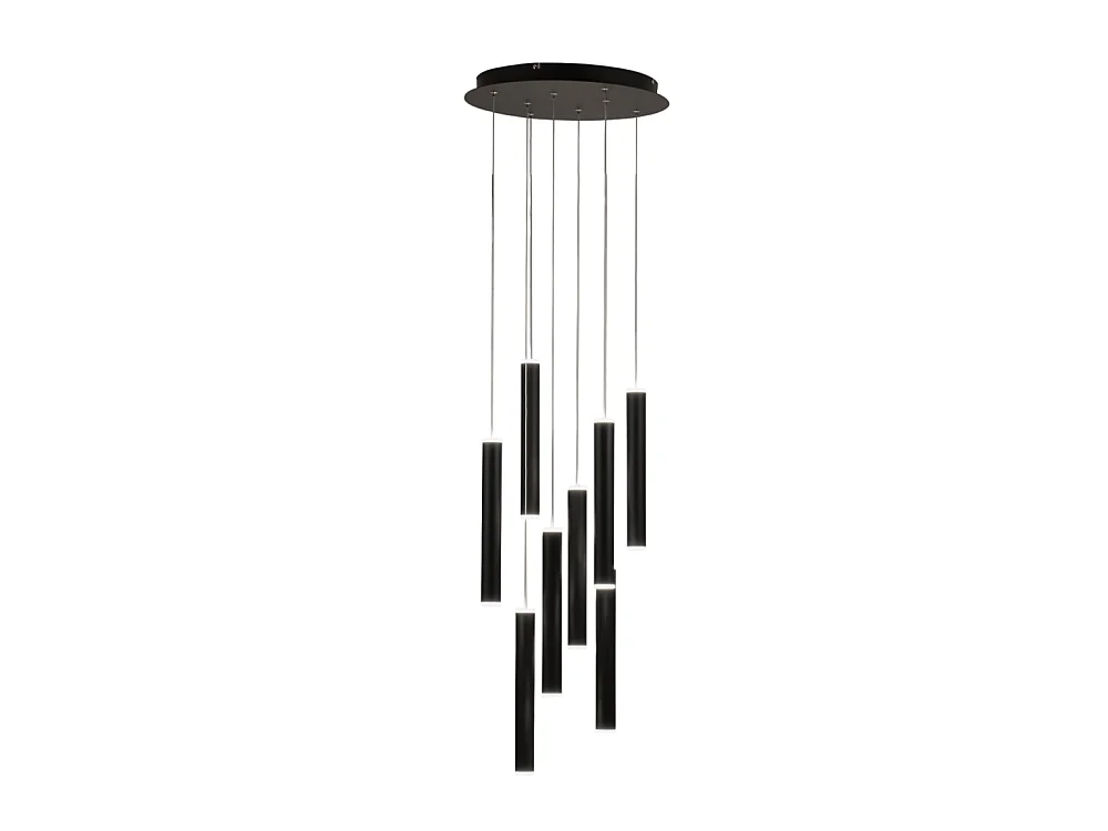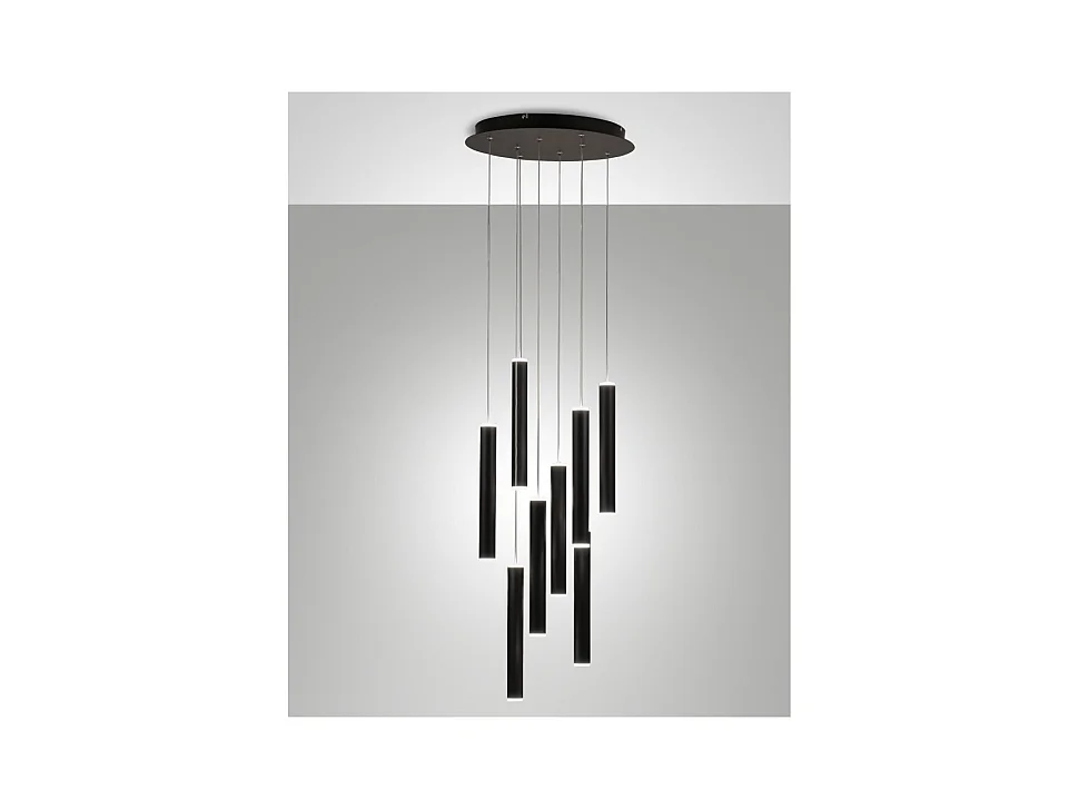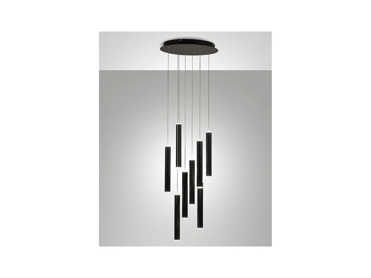 Fabas Luce Prado 8-lichts ronde hanglamp - 52W dimbare LED - Matzwarte ronde plafondrozet