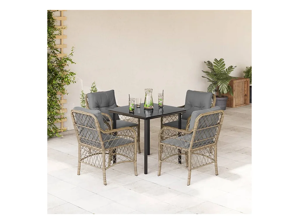 Wilder 5-delige Tuinset met kussens poly rattan beige