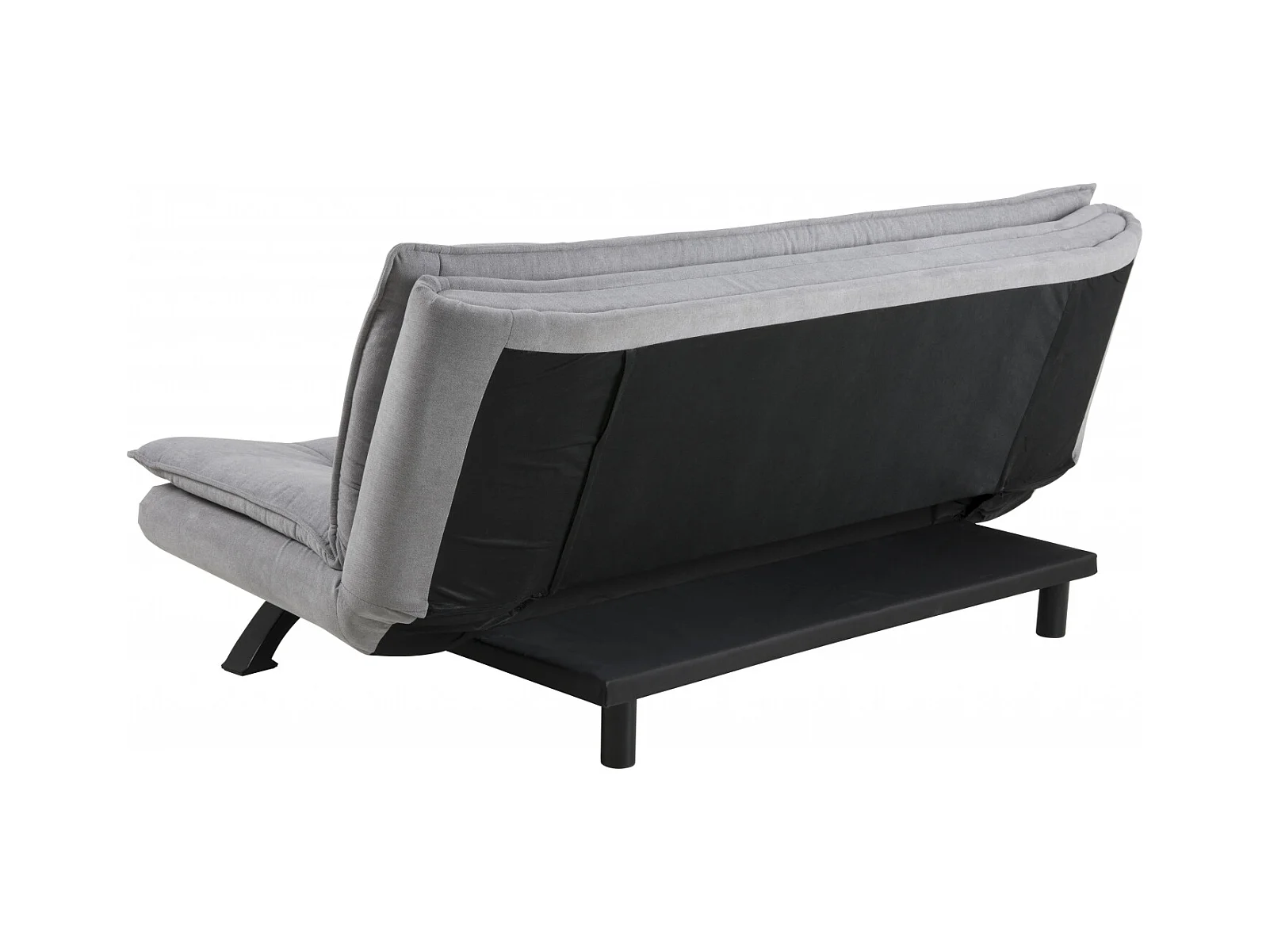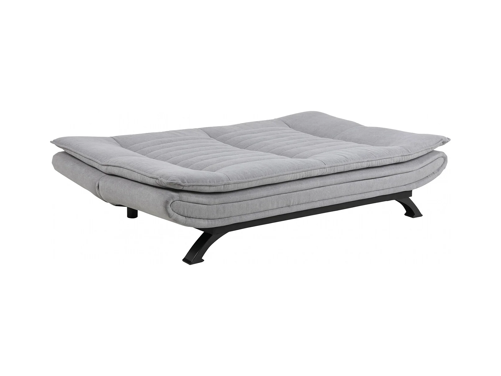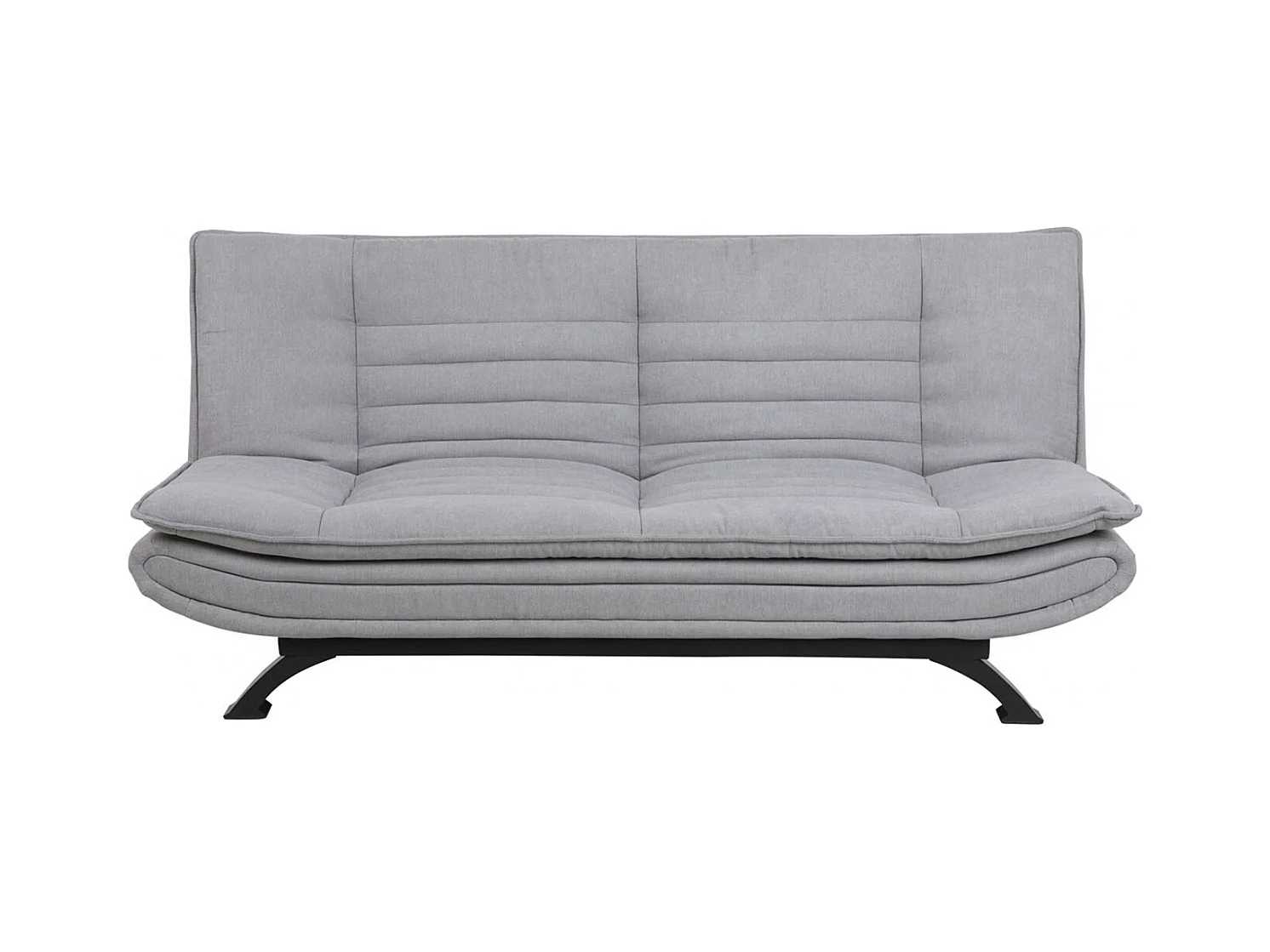 Fanny slaapbank in lichtgrijze stof en zwart metalen onderstel.