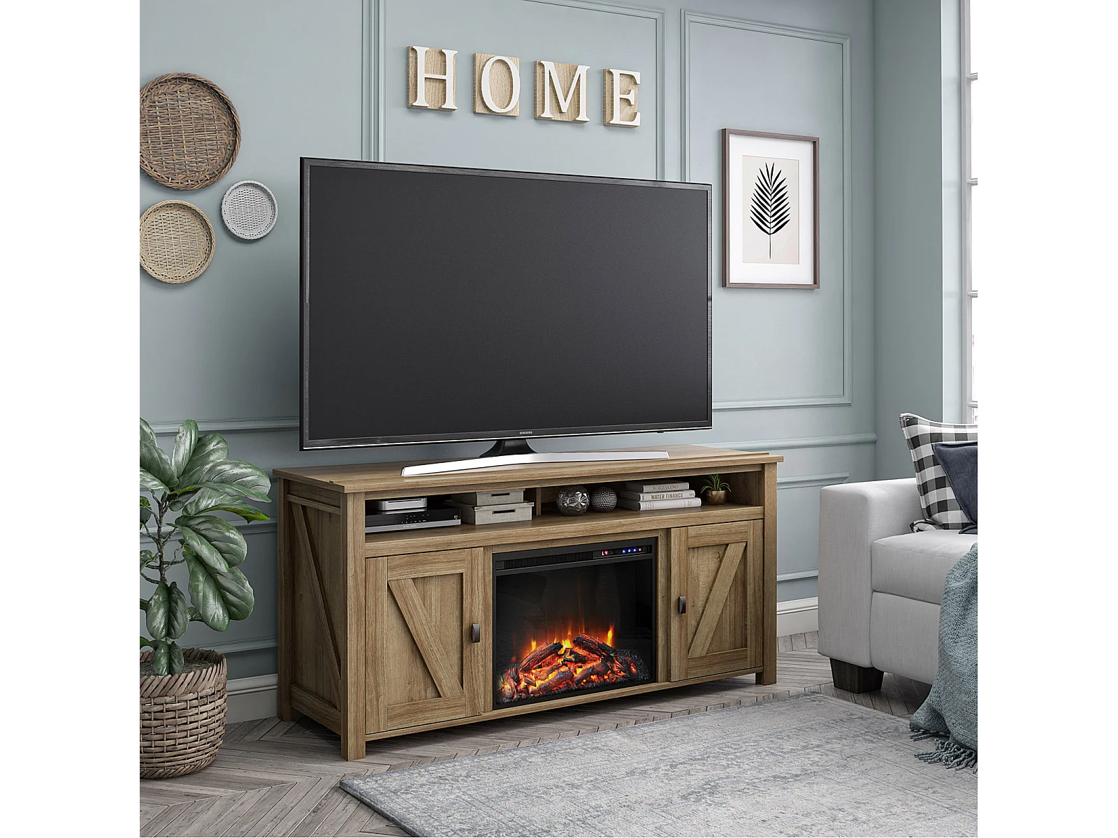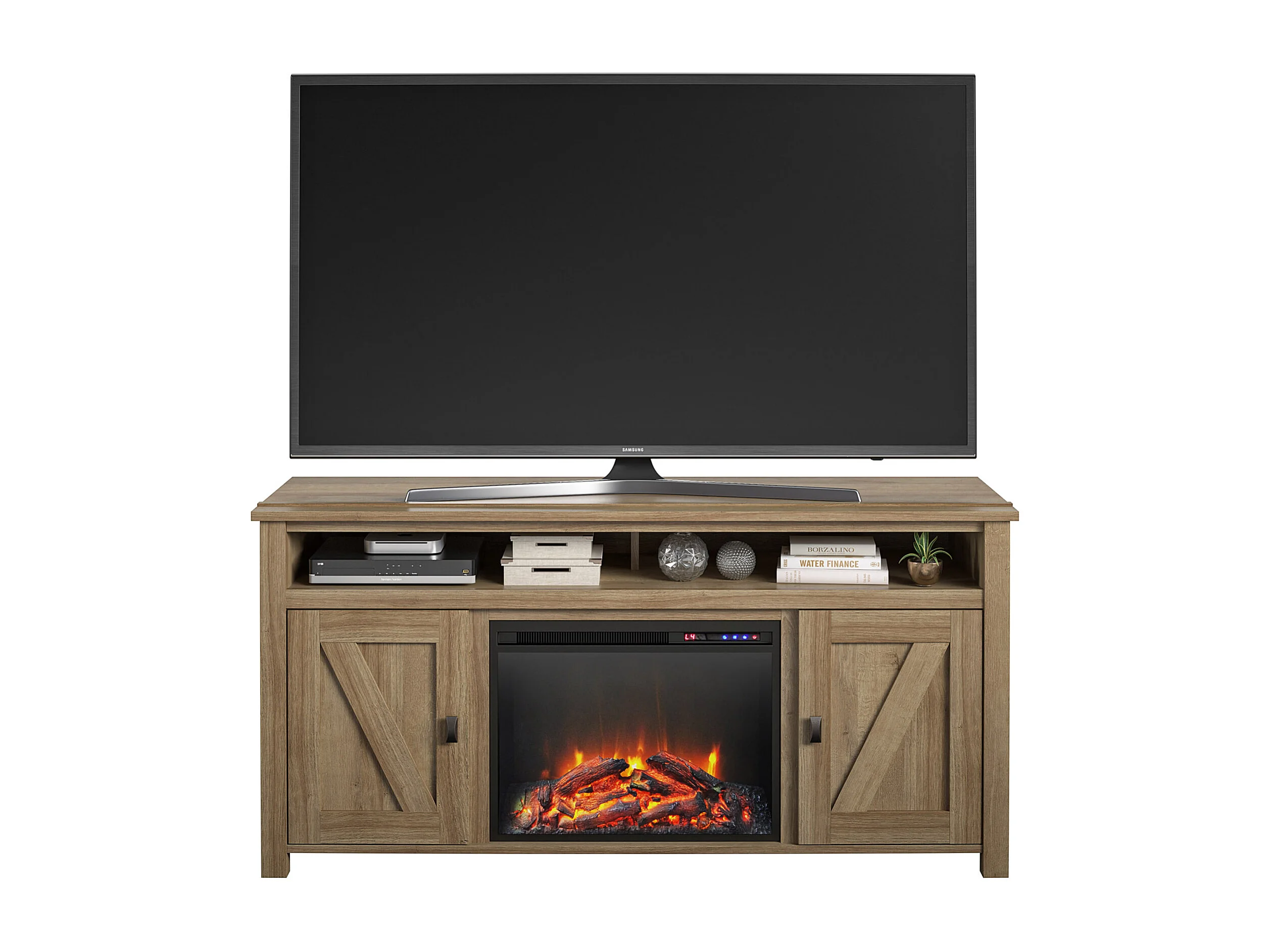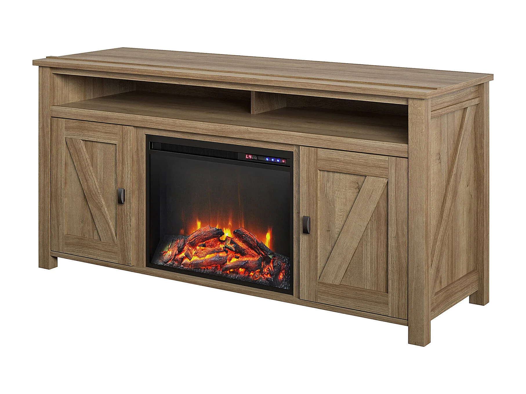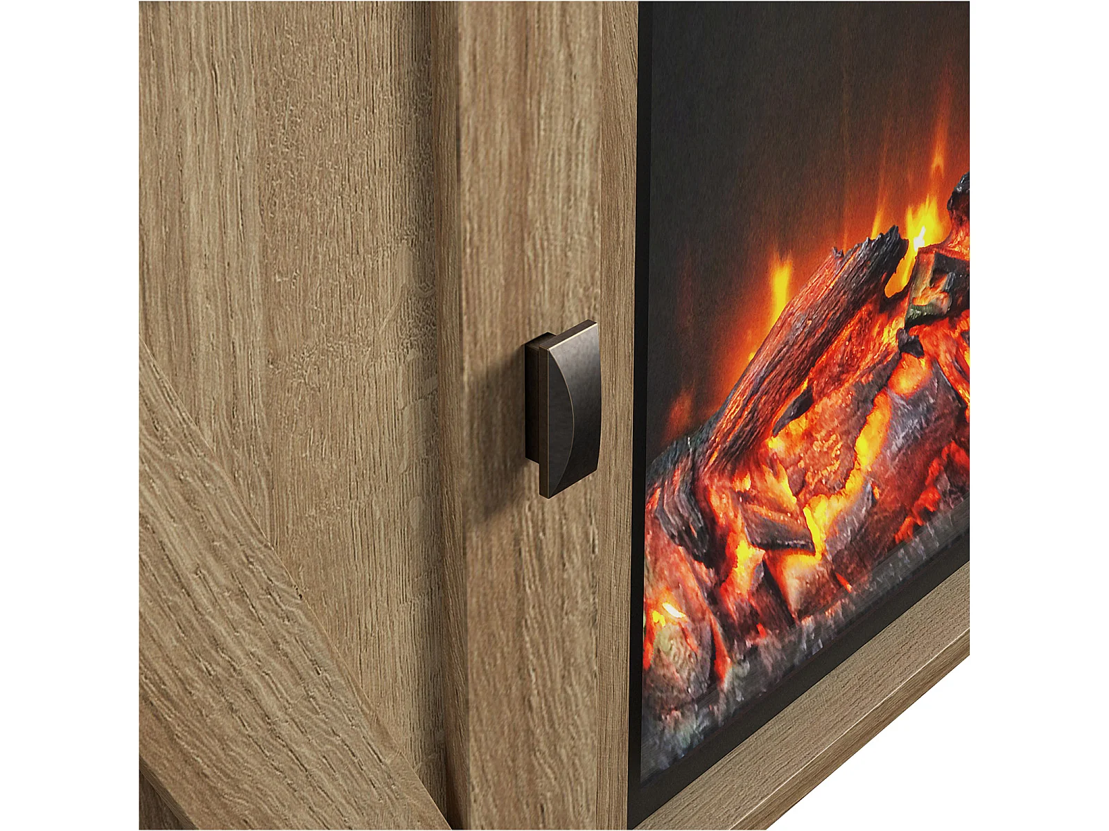 Farmington-TV-meubel met elektrische open haard in eiken spaanplaat
