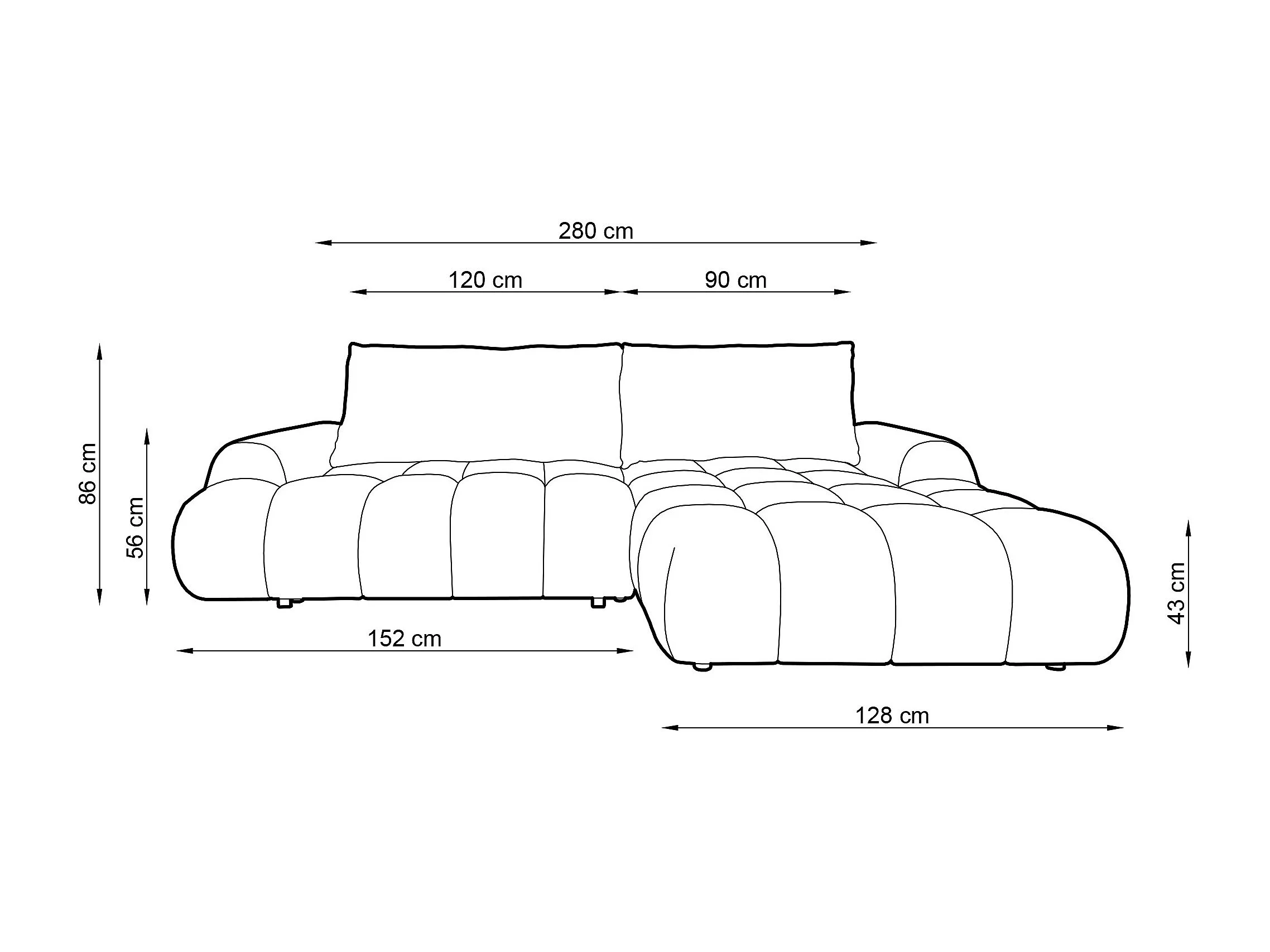 Hoekslaapbank rechts in grijze chenillestof FARNETA