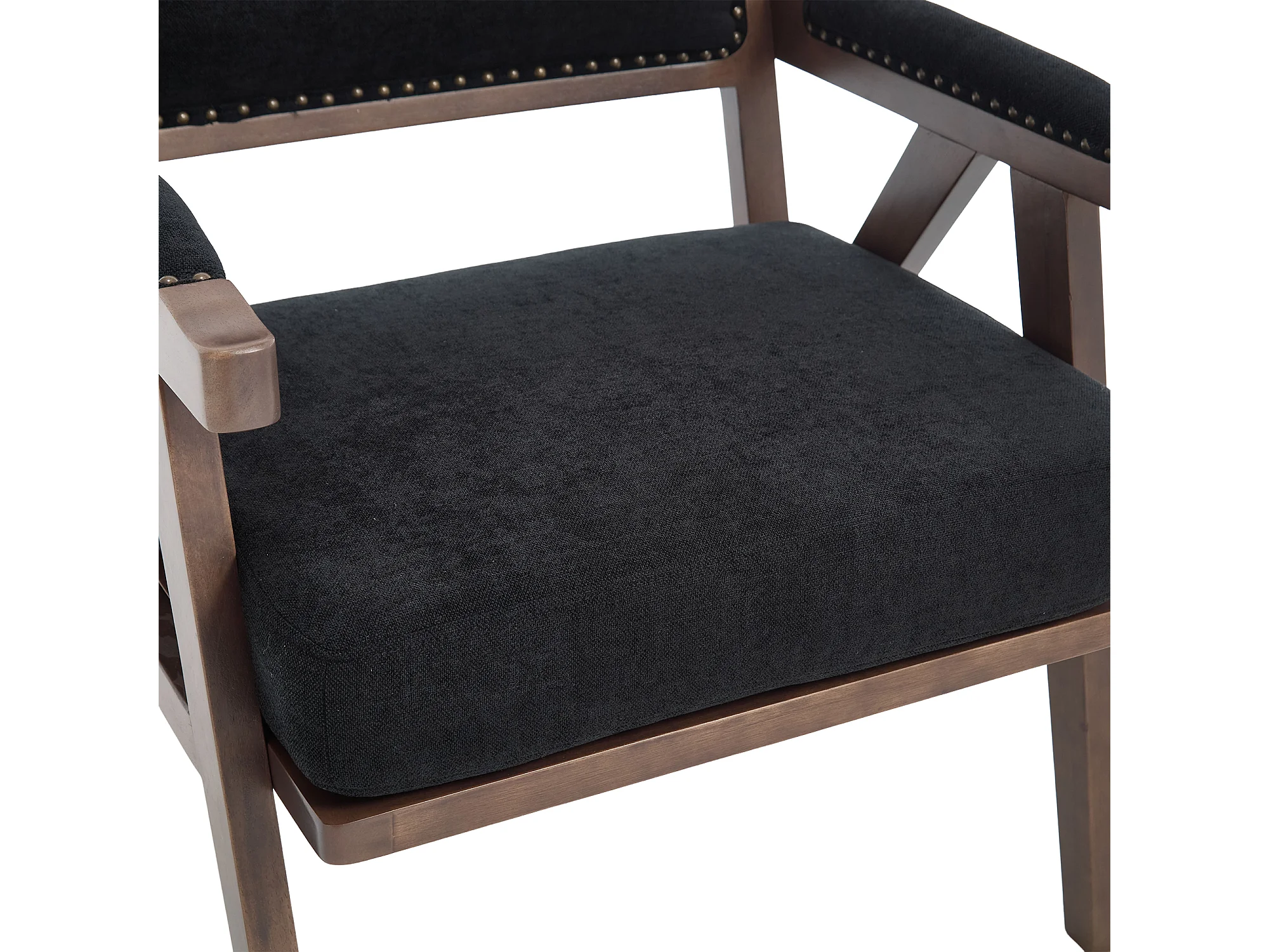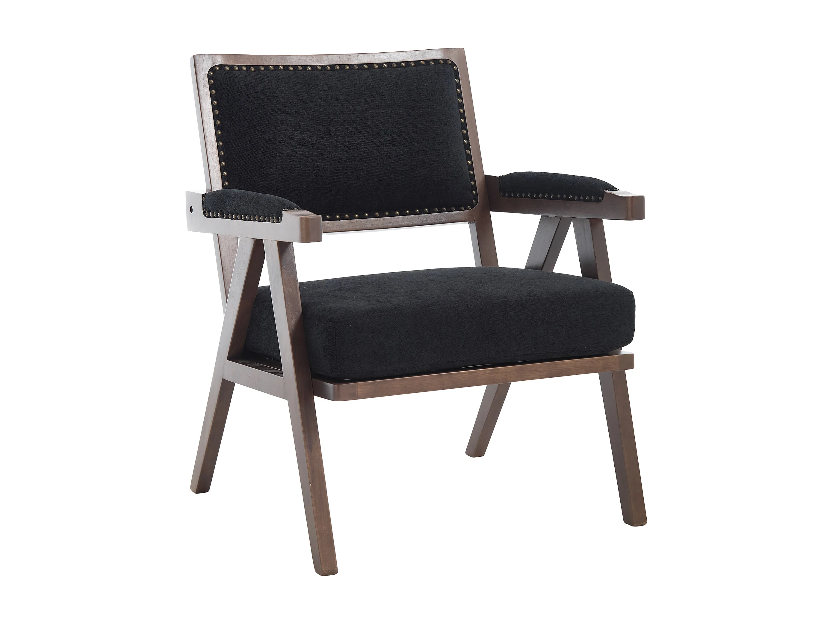 Fauteuil – 1-Zits Met Armleuningen – Dikke Kussens, Massief Houten Frame En Nieten – Ergonomisch Ontwerp Voor Woonkamer/Slaapkamer – Linnen – Zwart