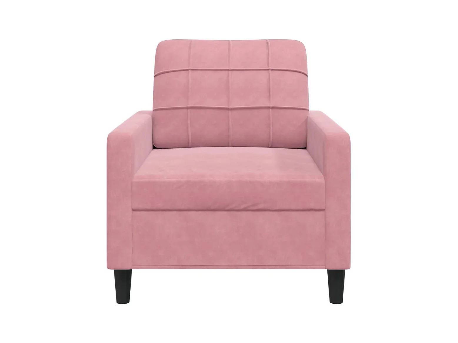 Roze fluwelen salonstoel met houten poten uit de ENJOY-collectie. Scandinavische stijl
