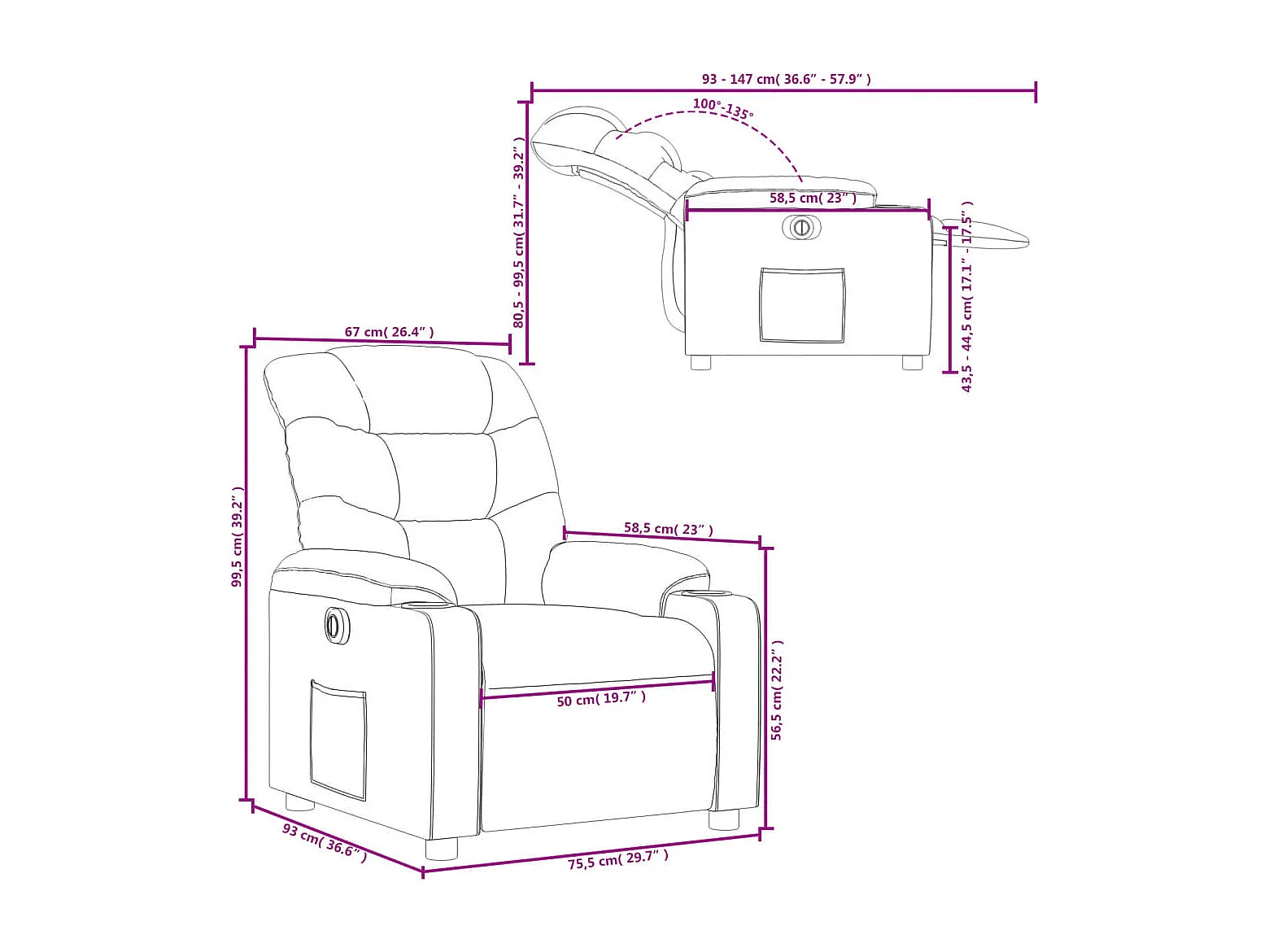 Fauteuil elektrisch verstelbaar stof donkergrijs