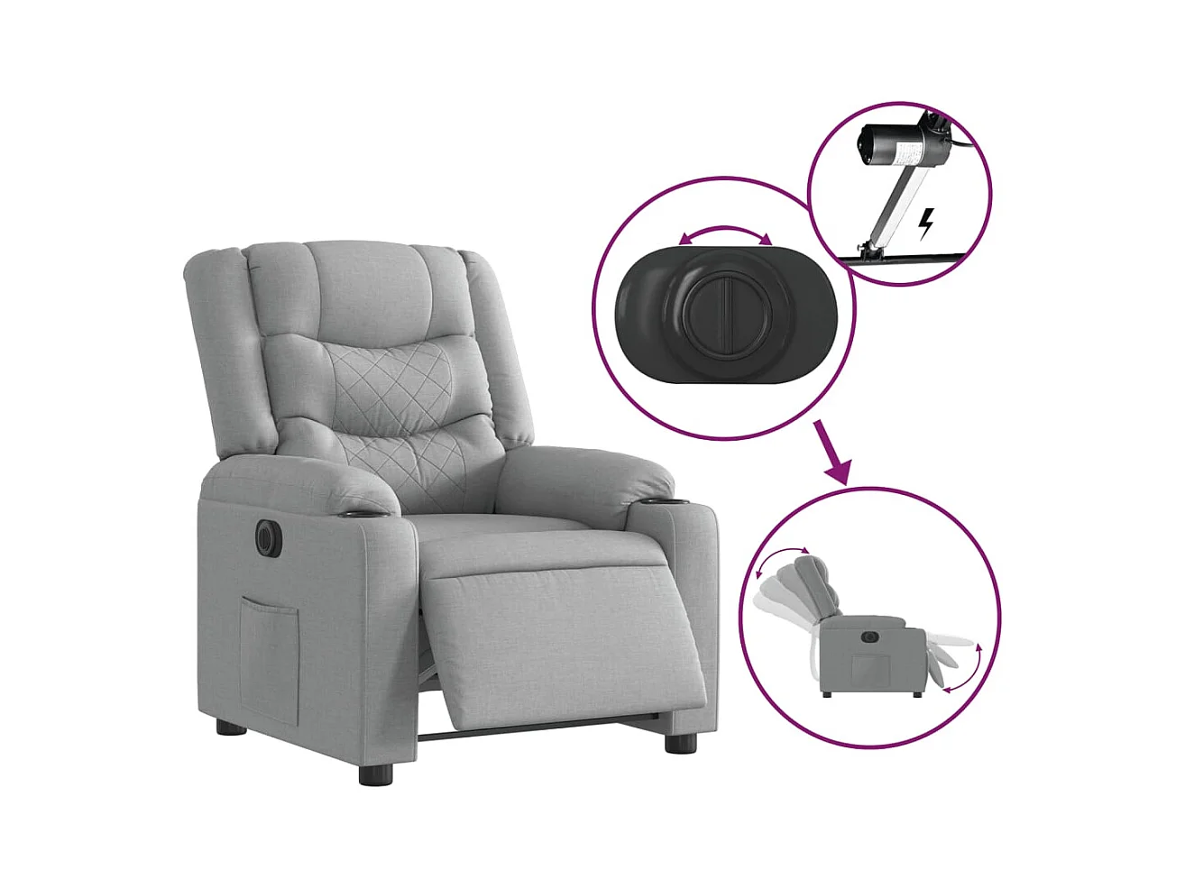 Fauteuil elektrisch verstelbaar stof lichtgrijs