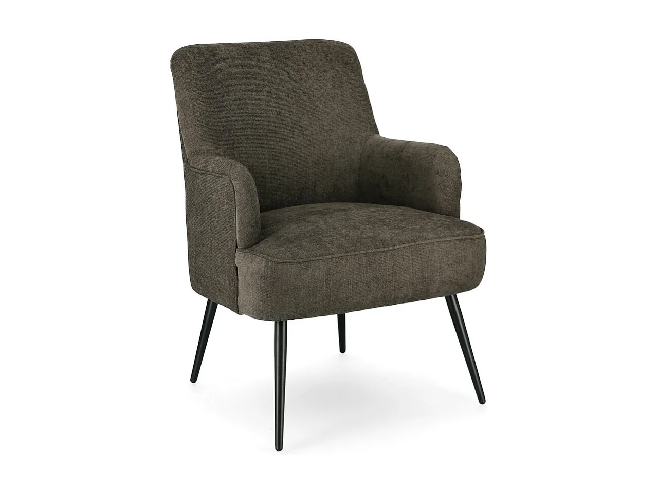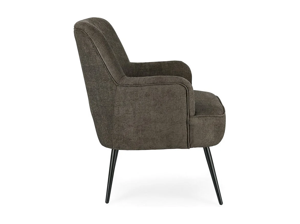 Fauteuil in bruine tijmstof en zwartgelakte stalen poten - ERNESTINE