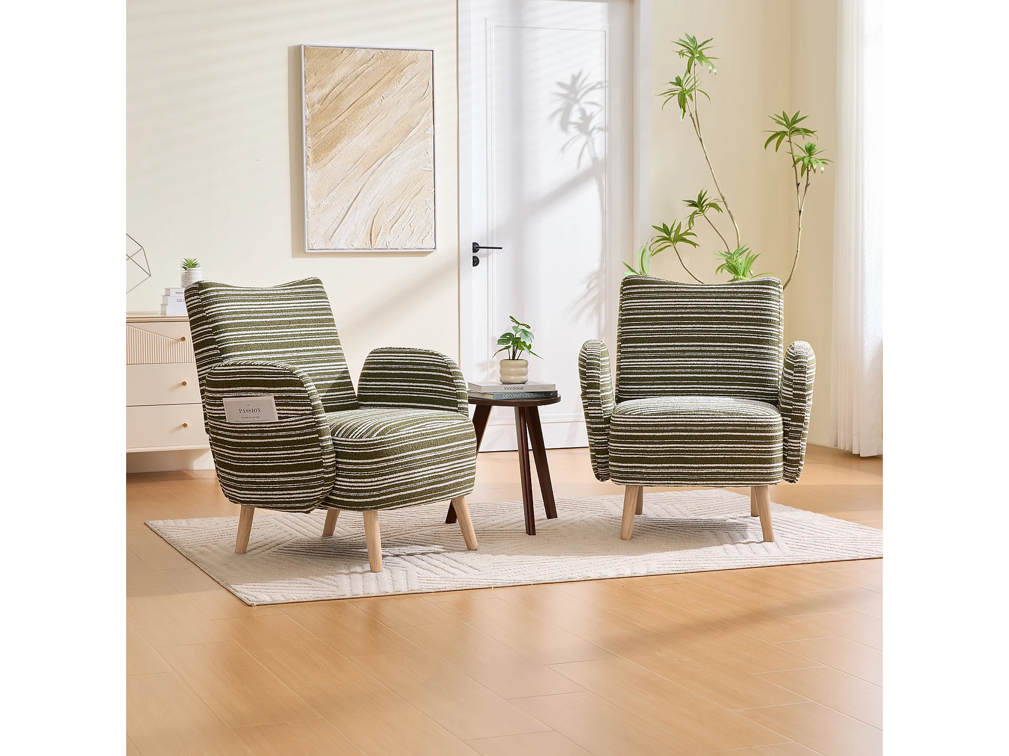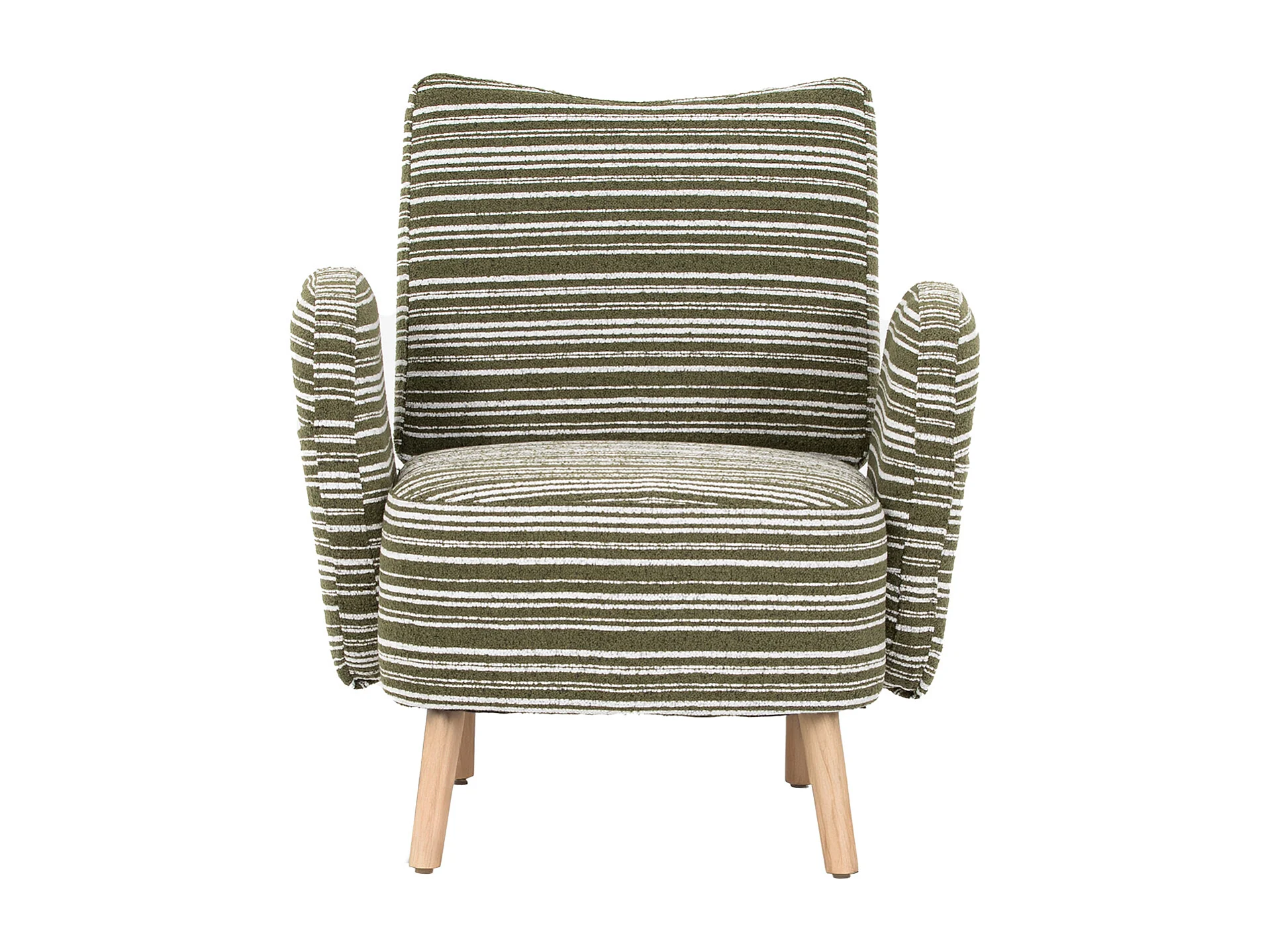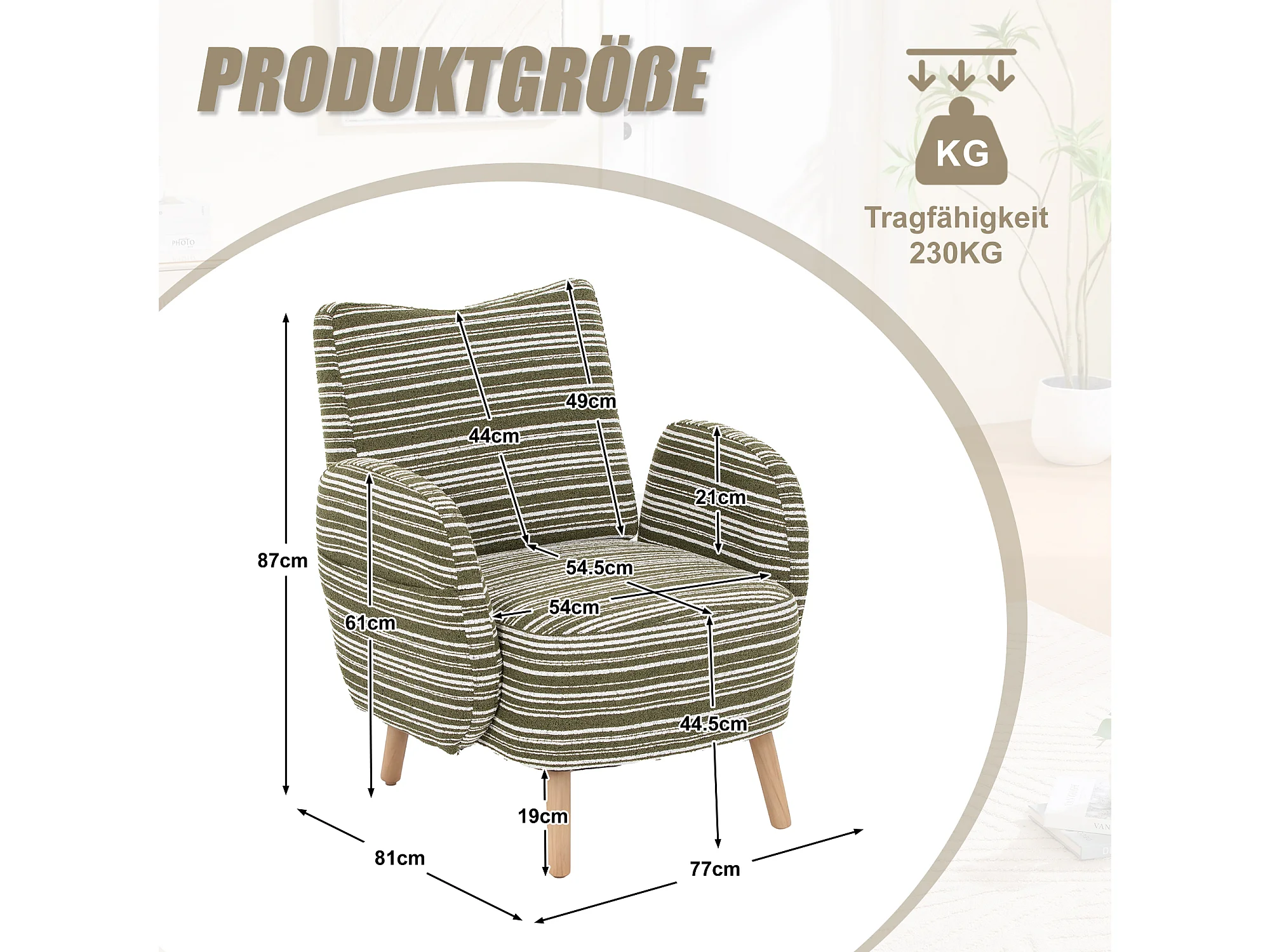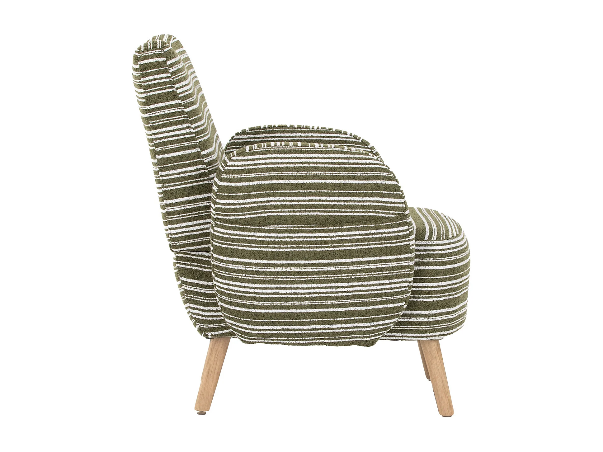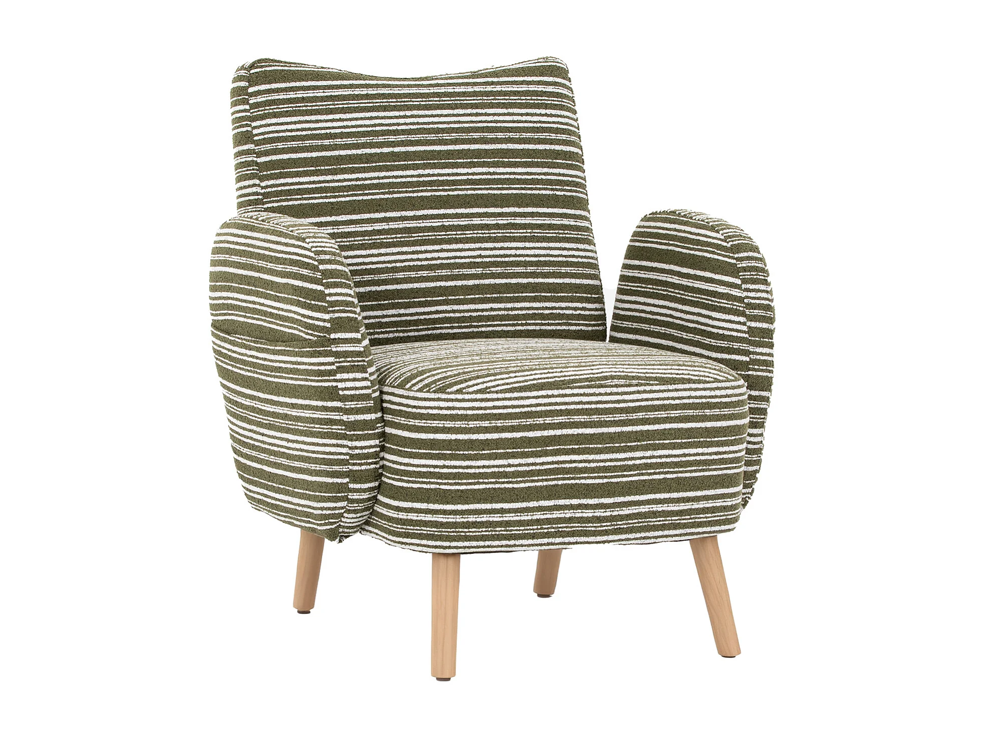 Fauteuil in olijfgroene boucléstof - Houten poten - Voor woonkamers, slaapkamers en kantoren