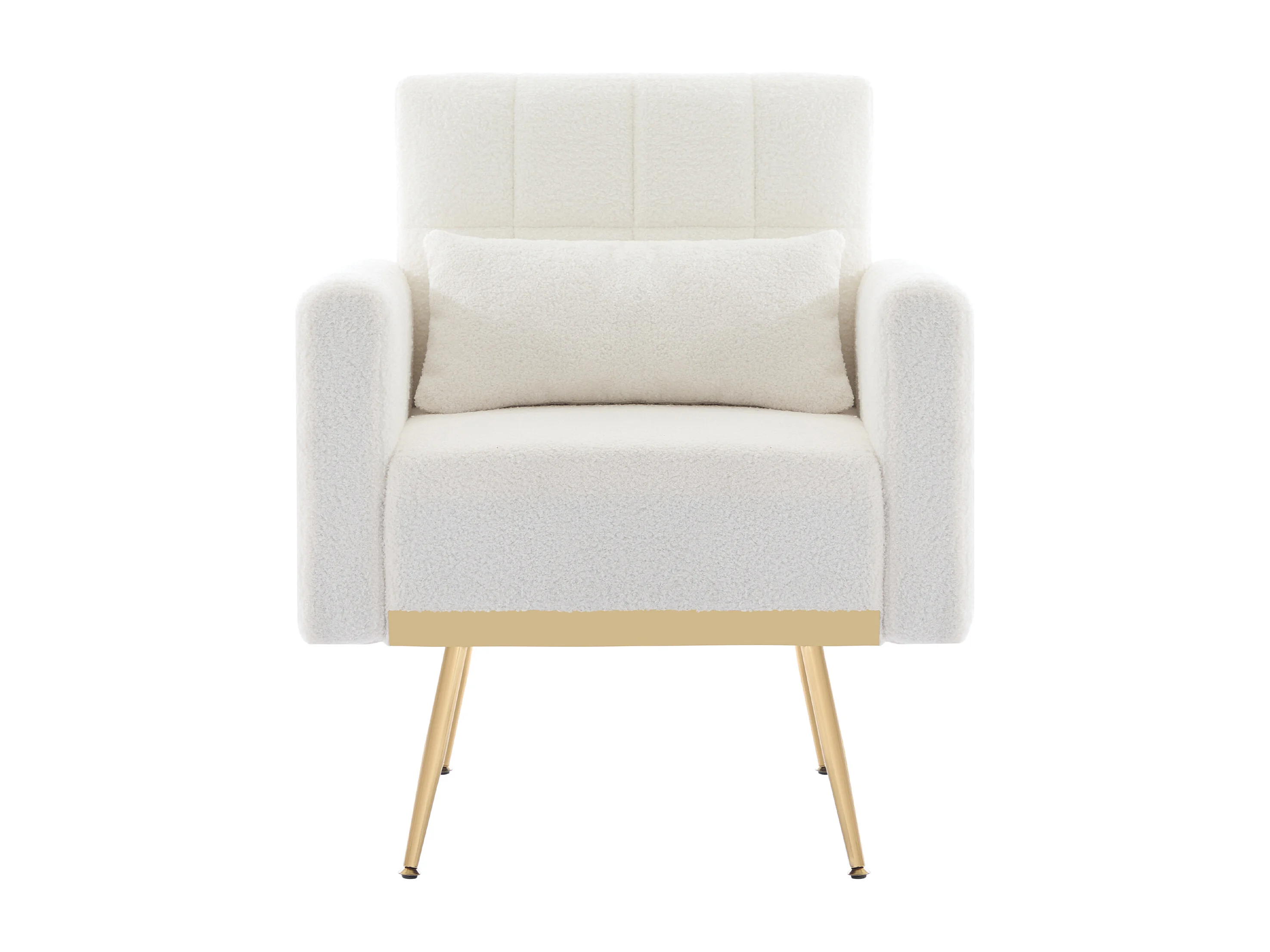 Fauteuil met armleuningen - Teddy fluwelen stof - 74 x 70 x 82 cm - Metalen poten - Wit