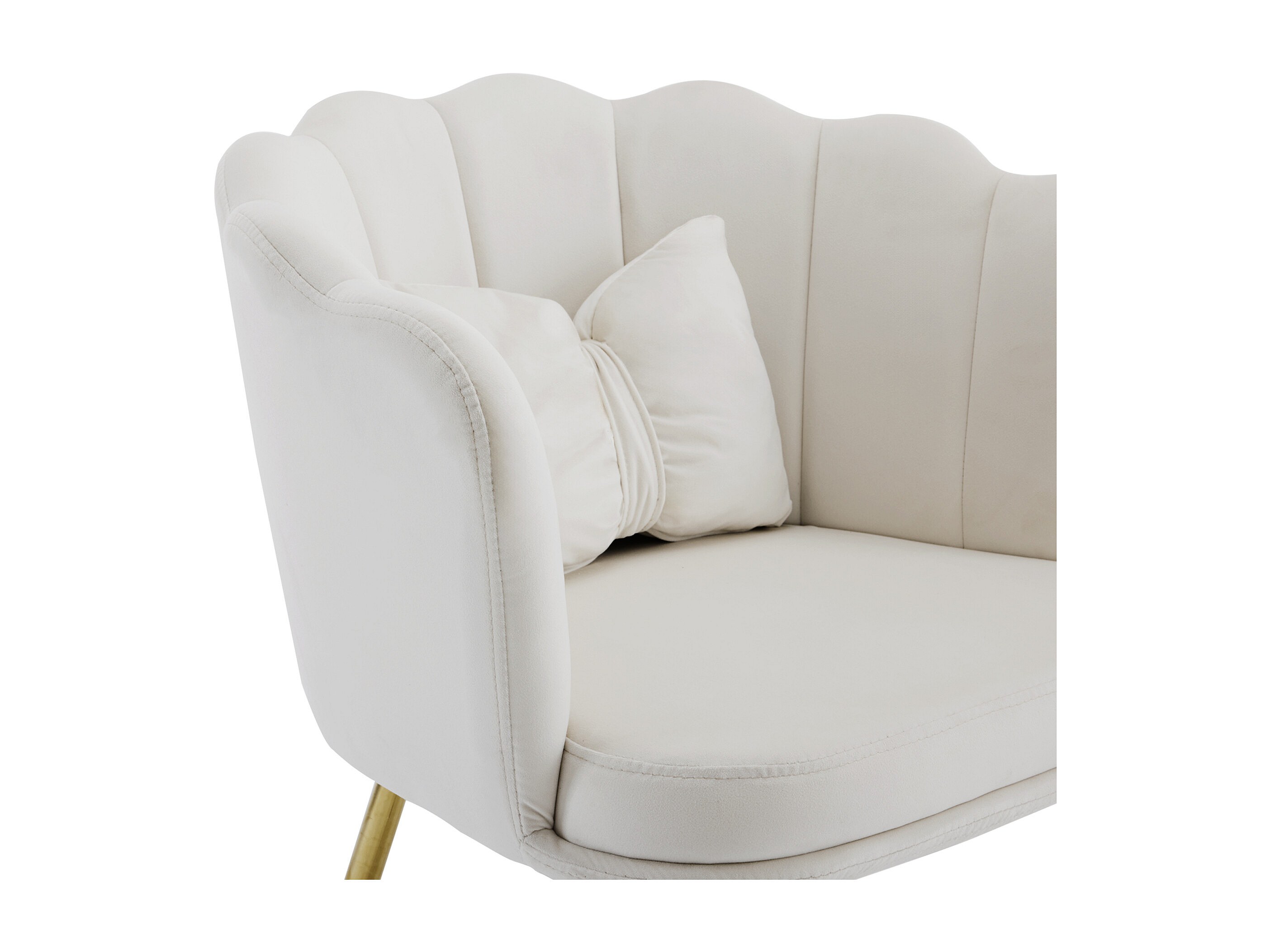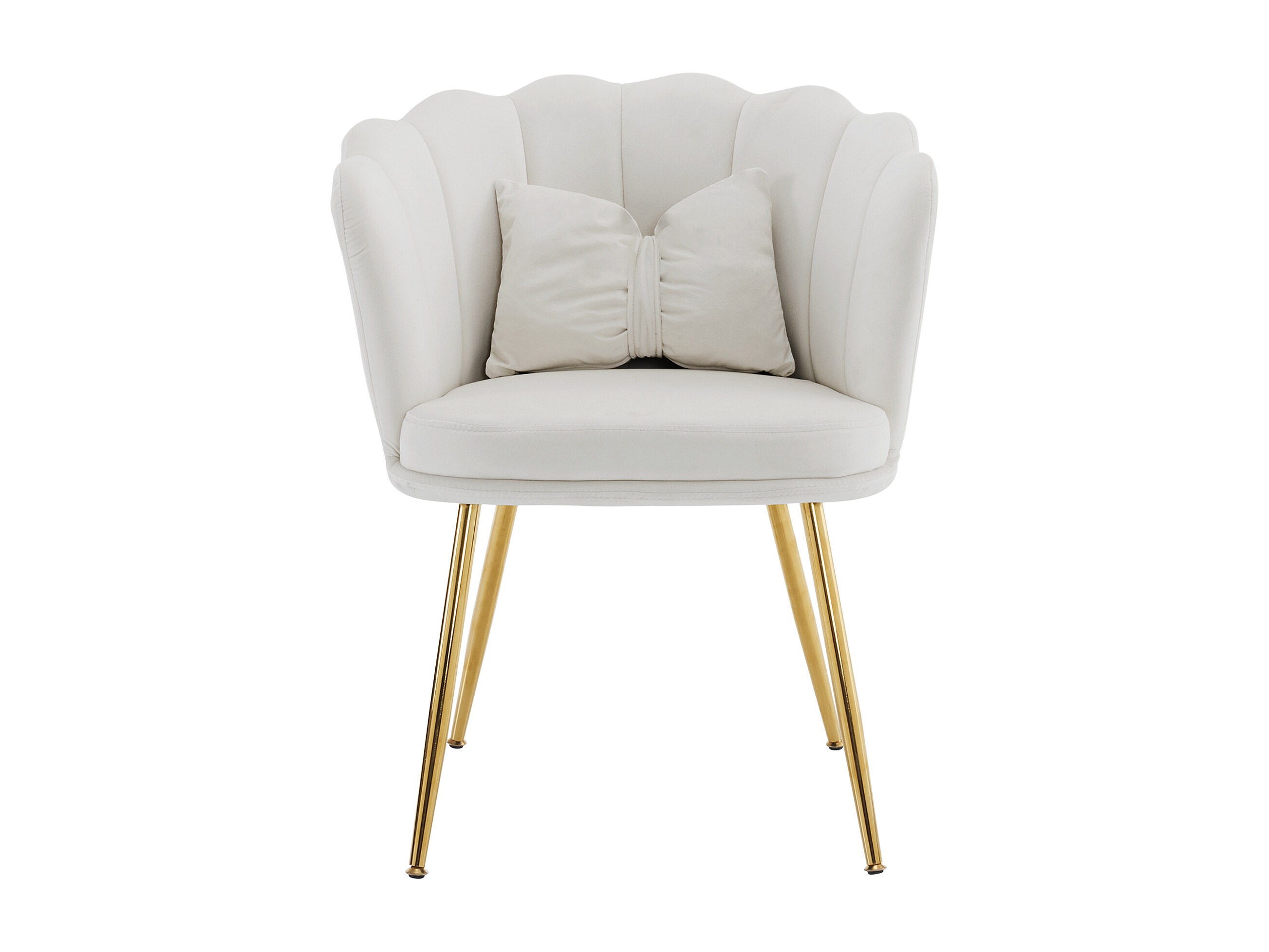 Fauteuil met bloembladvormige rugleuning, vlindervormige kussens, fluweel, Beige
