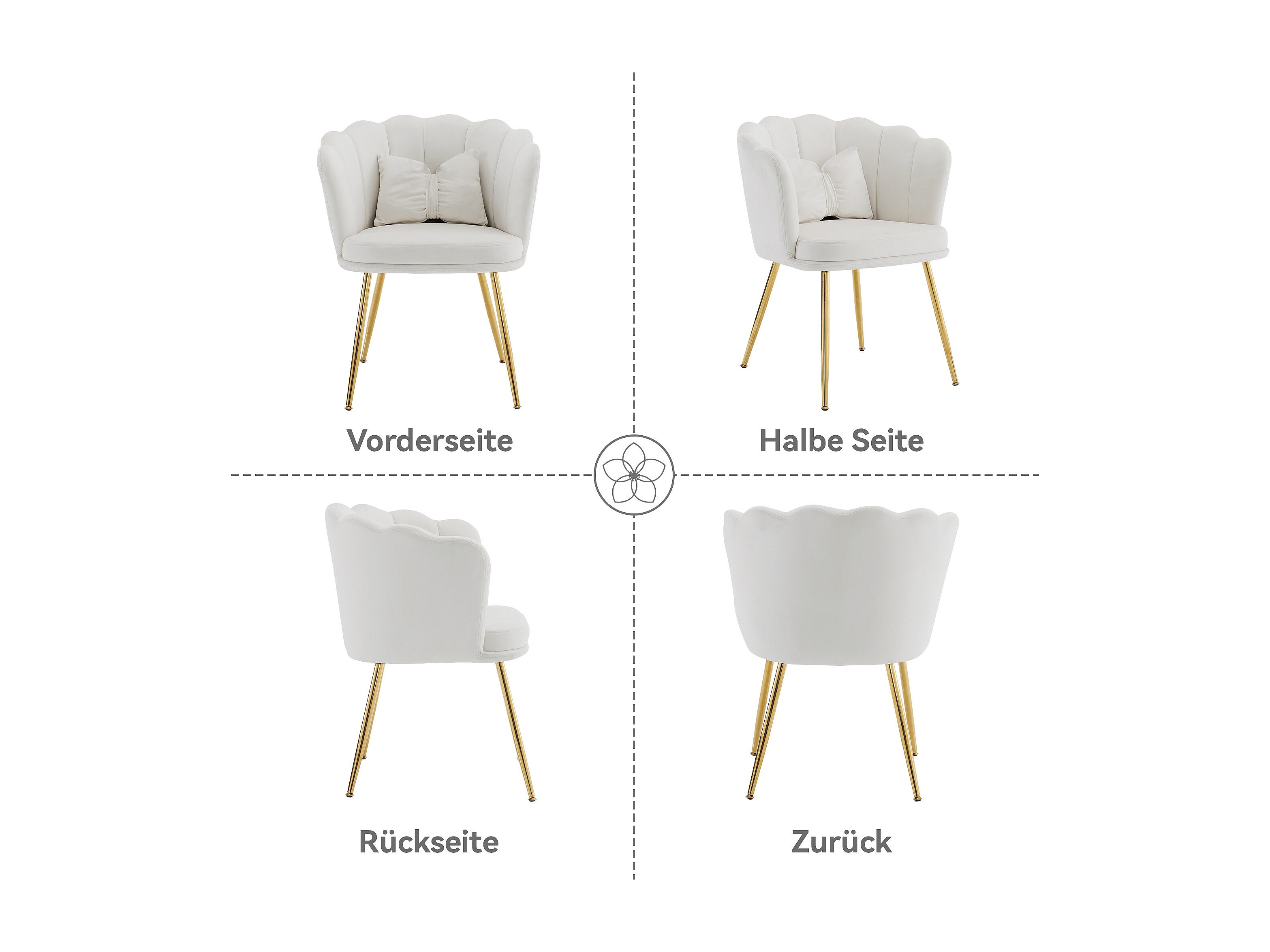 Uniek bloembladdesign: deze woonkamerstoel combineert functionaliteit en stijl. Elk stuk heeft de vorm van een bloemblad met gouden poten en geribbelde voeten voor een uniek design dat op elke plaats waar het wordt geplaatst opvalt.