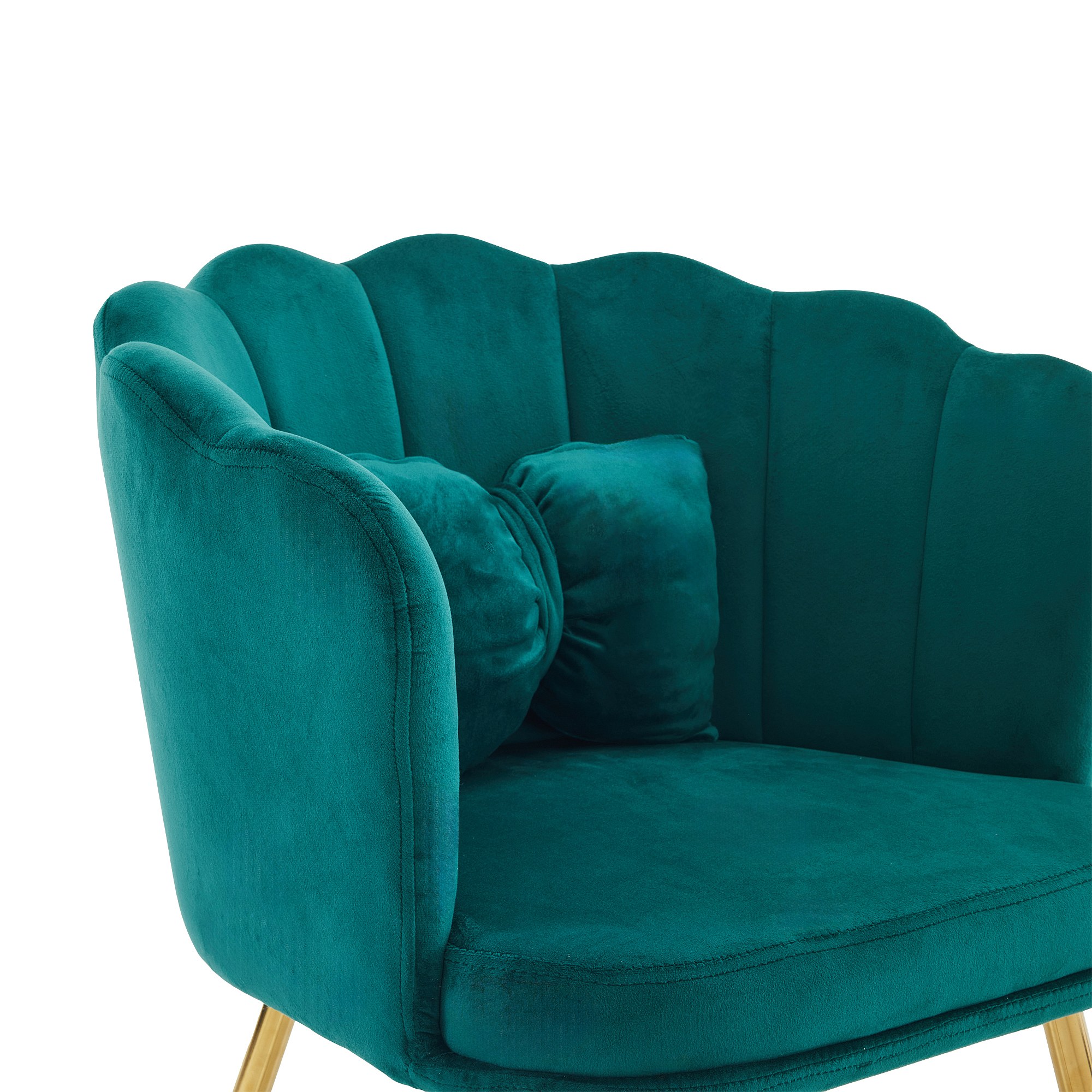 Fauteuil met bloembladvormige rugleuning, vlindervormige kussens, fluweel, Groen