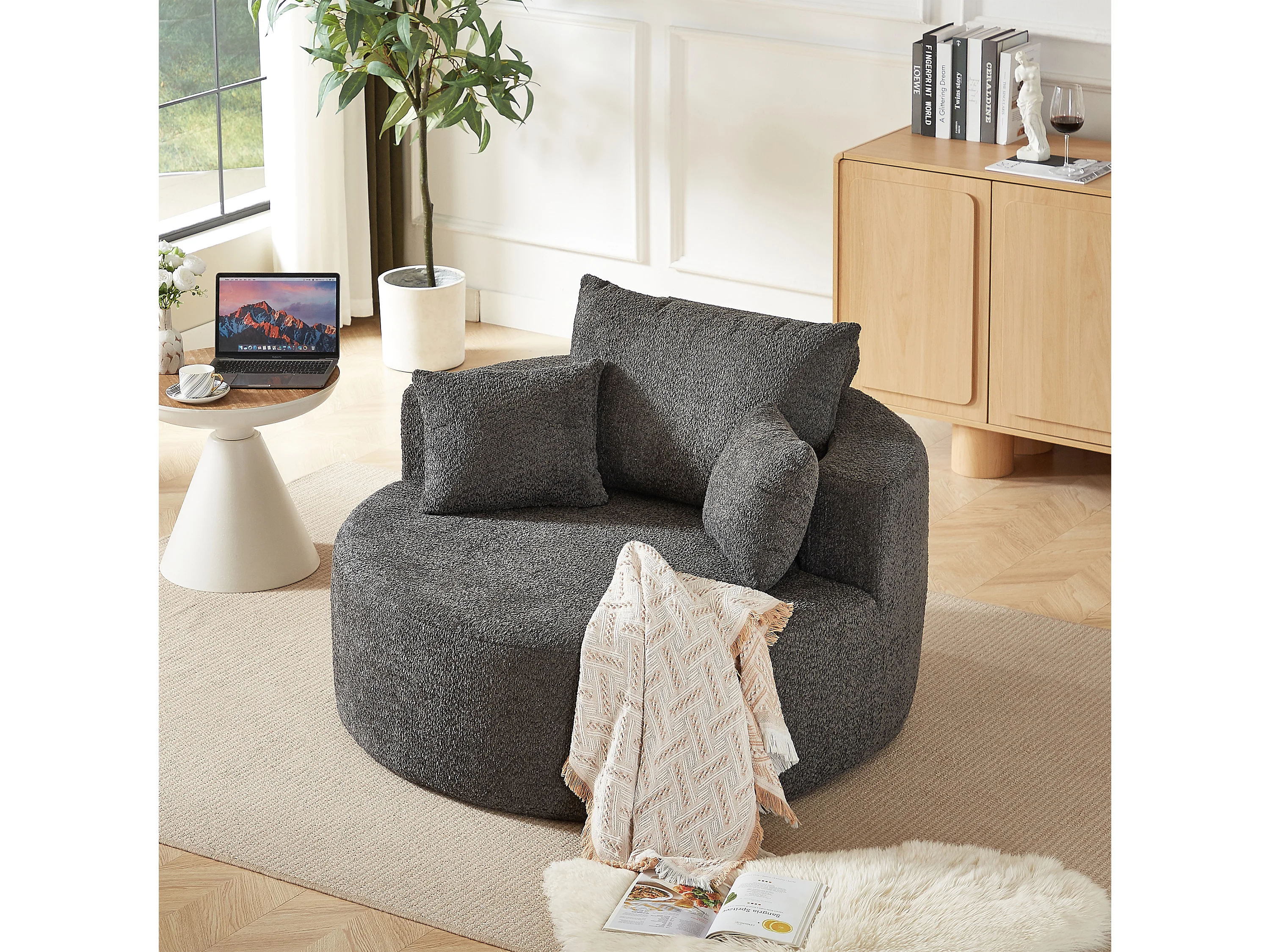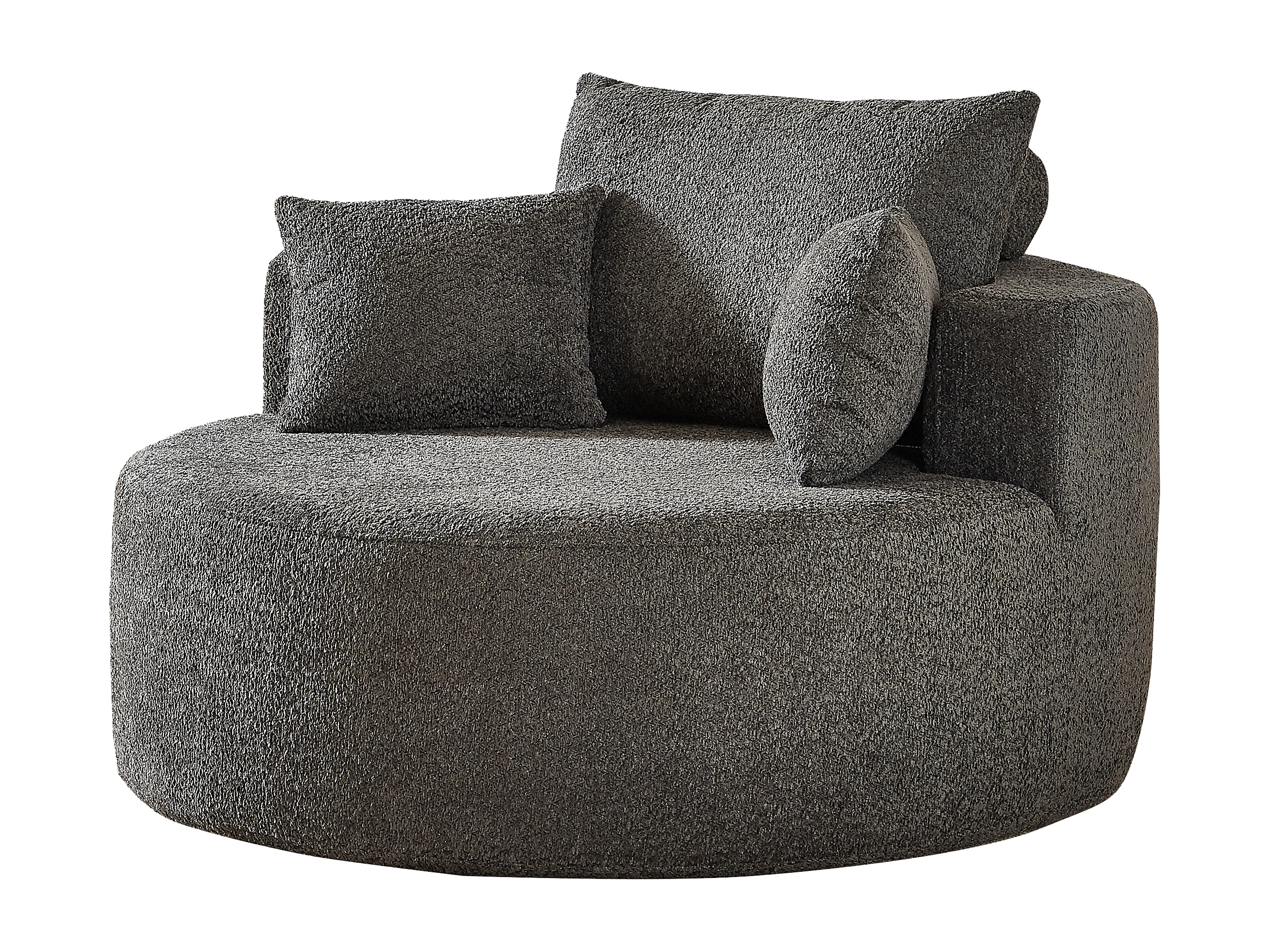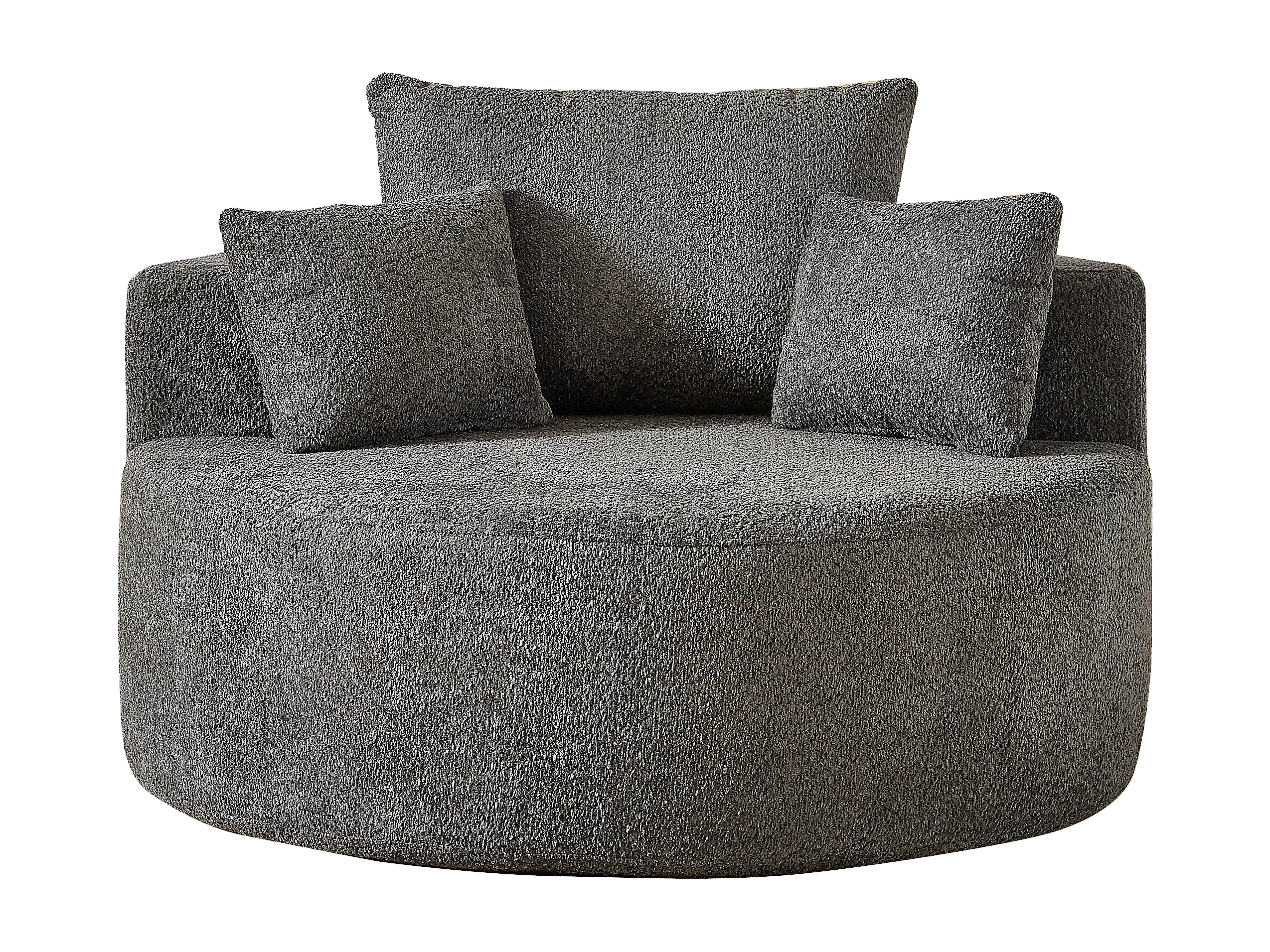 Fauteuil met lendensteun en hoofdsteun, grijze chenillestof