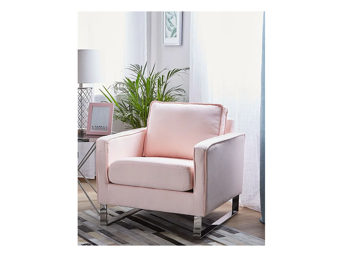Armstoel van donkerroze stof met zwart gelakte stalen poten - ERNESTINE