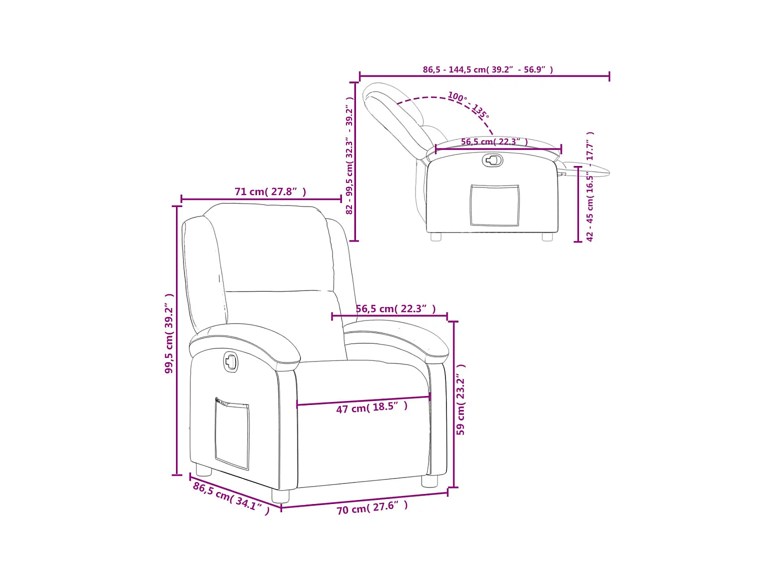 Relaxfauteuil met voetenbankje, 5-voudig verstelbare rugleuning, opbergruimte aan de zijkant, grijze stof (65x96,5x60cm)