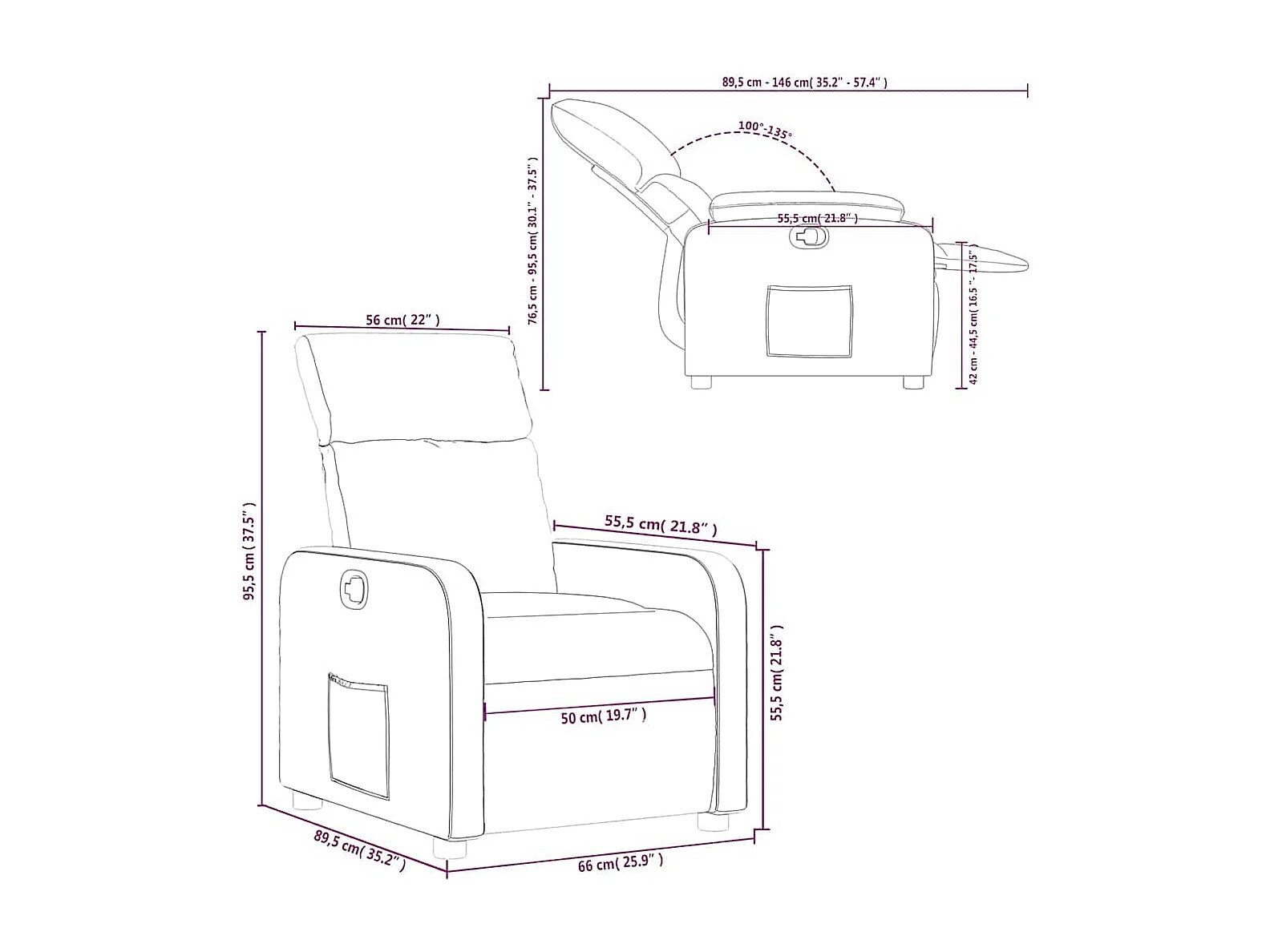 Fauteuil verstelbaar stof lichtgrijs
